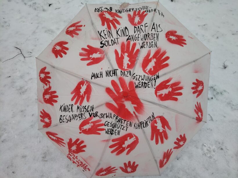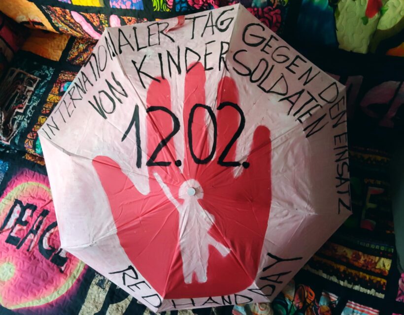 Anlässlich des Internationalen Tages gegen den Einsatz von Kindersoldaten findet am 12. Februar 2026 vor dem Brandenburger Tor (Mittelinsel Pariser Platz) in Berlin eine Kunstaktion mit Kundgebungen statt. Der Aufbau der Installationen beginnt um 13 Uhr, die Kundgebungen starten ab 15 Uhr.