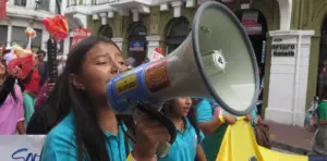Protest von Aktivistinnen der Gruppe „Guerreras por la Amazonía (GxA)“, die sich in Ecuador unter anderem für den Umweltschutz einsetzen (Archivbild © UDAPT)