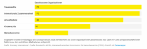 Diese Daten zeigen die absoluten Schließungen von NGOS in Nicaragua nach den am stärksten betroffenen Bereichen.
