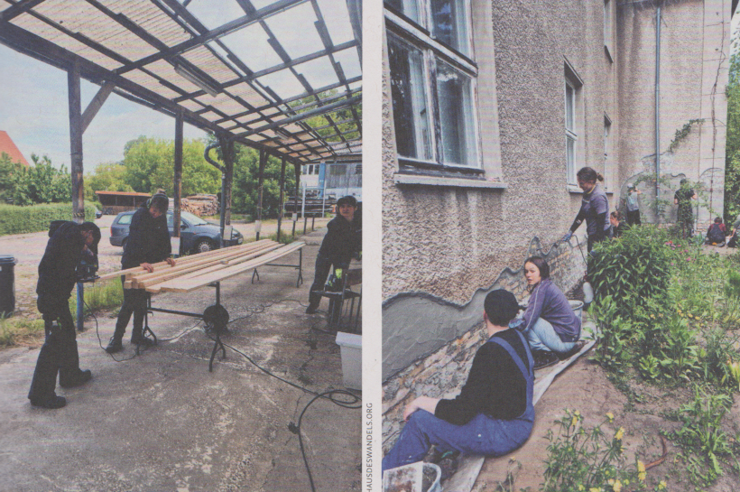 Mindestens einmal im Jahr findet außerdem eine gemeinsame Baustelle mit 15 bis 30 Menschen statt, meist in Projekten, die wir unterstützen wollen. Wir überlegen uns gut, wie wir diese Baustellen gestalten. Wir wollen uns dabei wohl fühlen, dann können auch wir besser arbeiten. Wir wollen nicht nur eine Baustelle durchballern. Wir achten auf unsere Körper, es gibt Gymnastik und Rückenschule. Wir organisieren das Kochen und Putzen gemeinsam, und kümmern uns umeinander. Bereichernd ist auf diesen Baustellen auch, in anderen Gewerken zu arbeiten, manche beschäftigen sich hier das erste Mal mit Metall oder Elektrik – es ist im Prinzip eine Weiterbildung. Beim letzten Treffen gab es zudem Workshops zur Selbstverteidigung.