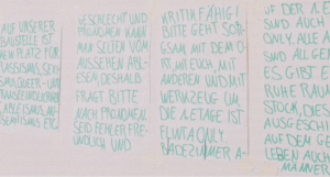 Die Baustellen des Bauhanderwerker*-innen-Treffen (BH*T) setzen ein Beispiel, und lassen uns Fragen stellen: Wie will ich arbeiten? Wie kann eine gute Baustelle aussehen?