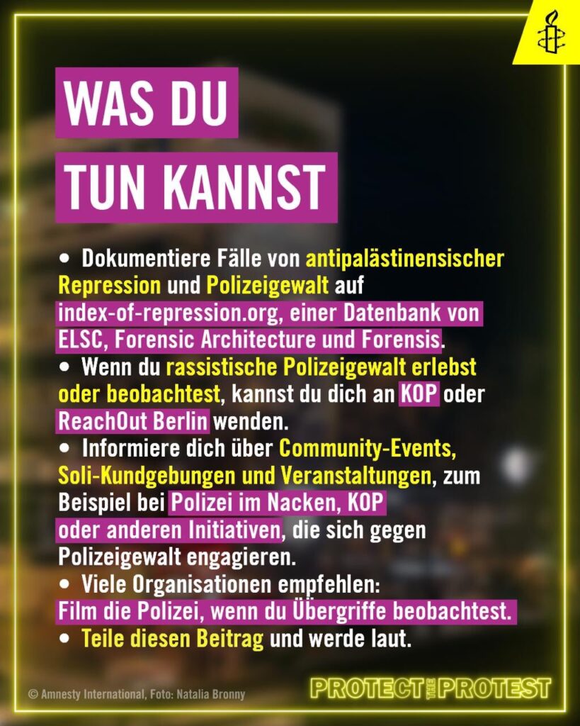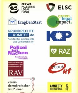 6greenlegal.eu, ogrundrechtekomitee, kop_berlin, polizei_im_nacken, @raz_aktive_zivilgesellschaft, #reachoutberlin, Republikanischer Anwältinnen- und Anwälteverein e. V. und Verein demokratischer Ärzt*innen!