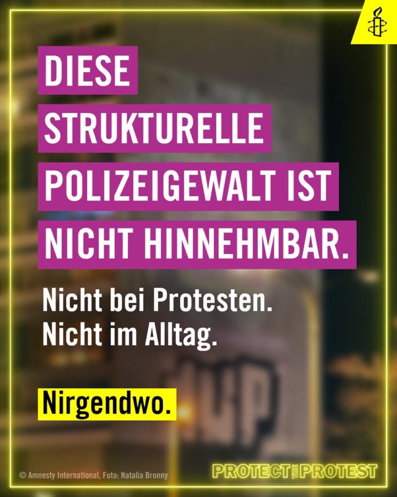 Ein Rechtsstaat muss Protest ermöglichen und schützen. Wenn Menschen, die für Menschenrechte einstehen, eingeschüchtert, verletzt oder kriminalisiert werden, betrifft das uns alle.