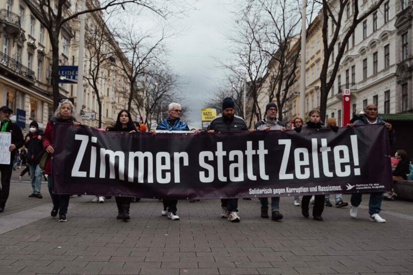 Unter dem Motto „Zimmer statt Zelte“ haben am Samstagnachmittag in Wien hunderte Menschen gegen die Unterbringung von geflüchteten Menschen in Zelten demonstriert. Organisiert wurde der Protest von der „Plattform für eine menschliche Asylpolitik“.