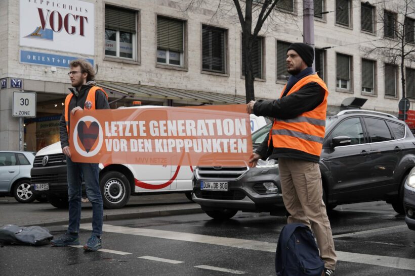 In Schnellverfahren am Amtsgericht Heilbronn wurden soeben zwei Unterstützer der Letzten Generation für eine einzige Straßenblockade zu mehrmonatigen Haftstrafen ohne Bewährung verurteilt. Zum ersten Mal entscheidet sich ein deutsches Gericht damit zu diesem Dammbruch – die erste Gefängnisstrafe. Direkt nach Urteilsverkündung unterbrechen die Verurteilten aktuell erneut den Verkehr auf der B27/Neckarsulmer Straße stadteinwärts in Heilbronn.