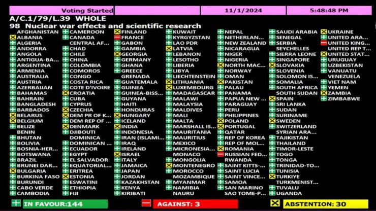 Deutschland hat gemeinsam mit 143 anderen Staaten ein starkes Zeichen gesetzt und die UN-Resolution für eine wissenschaftliche Untersuchung der globalen Auswirkungen eines Atomkriegs unterstützt – eine Studie, wie sie zuletzt 1989 durchgeführt wurde und angesichts der veränderten Bedrohungslage heute dringend notwendig ist. Dass ausschließlich die Atomwaffenstaaten Frankreich, Russland und das Vereinigte Königreich aktiv gegen diese Resolution gestimmt haben, lässt darauf schließen, dass sie die Ergebnisse einer solchen Untersuchung und deren mögliche Wirkung auf die öffentliche Meinung fürchten. Eine umfassende Aufklärung über die verheerenden Folgen von Atomwaffen muss jedoch Teil jeder demokratischen Debatte über die Unterstützung für diese Massenvernichtungswaffen sein.