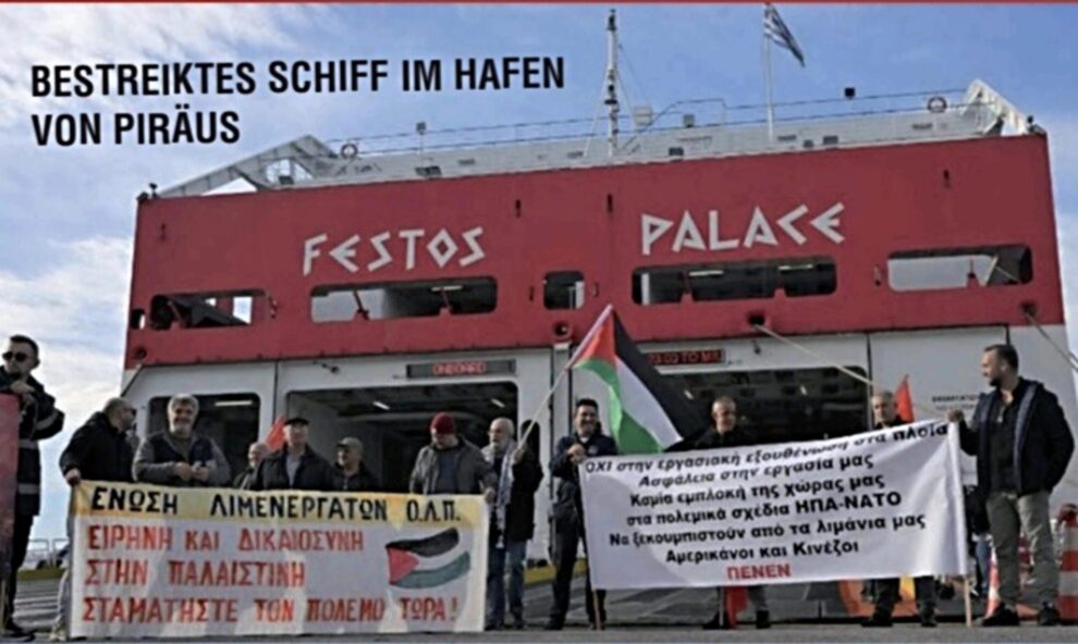 Veranstaltung Griechenland: Widerstand gegen Kriegsbeteiligungen und Waffentransporte Freitag, 8. Mai 2026, 19.00 Uhr, bUm Paul-Lincke-Ufer 21, 10999 Berlin Es lädt ein: Gewerkschaftliche Solidaritätsgruppe „Gegen Spardiktate und Nationalismus“ Zwei Hafenarbeiter berichten über ihre Streiks zur Verhinderung von Waffenlieferung an das israelische…