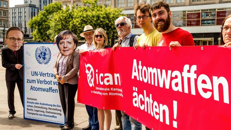 Am ersten Jahrestag des internationalen Atomwaffenverbots haben Friedensaktivisten die Bundesregierung zum Beitritt aufgefordert. In einem Straßentheater auf dem Berliner Alexanderplatz wagten sie einen optimistischen Blick in die Zukunft: Zwei als Bundeskanzlerin Angela Merkel und Außenminister Heiko Maas verkleidete Personen haben…