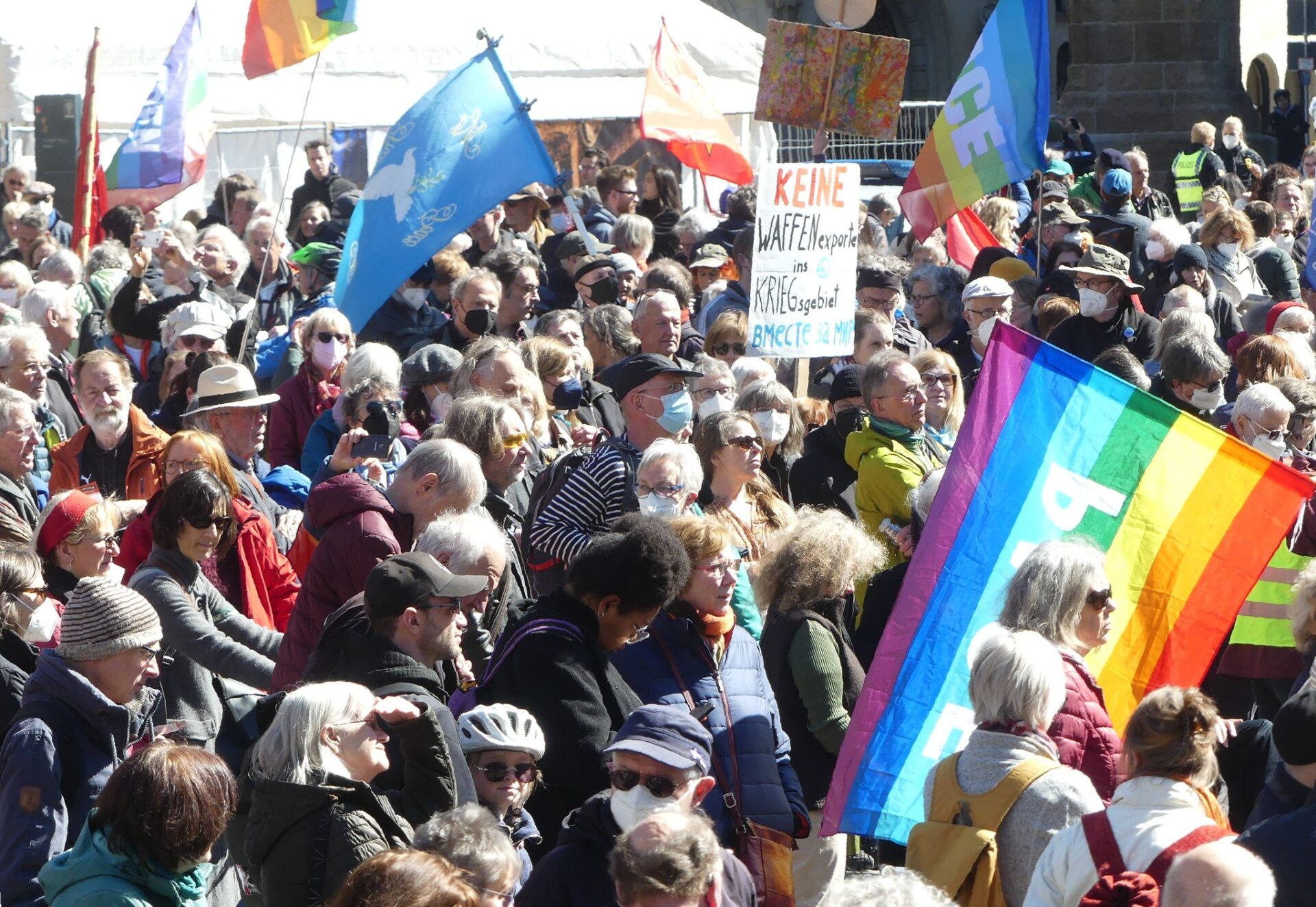 Etwa 2000 Teilnehmerinnen und Teilnehmer zogen in einem bunten Zug, erstmals unter großer Beteiligung der Bremer palästinensischen Community, vom Friedenstunnel an der Parkallee zum Marktplatz, um gegen Aufrüstung, Sozialabbau und die Kriegsbeteiligung Deutschlands am Ukraine-Krieg zu protestieren. Gefordert wurde ein…