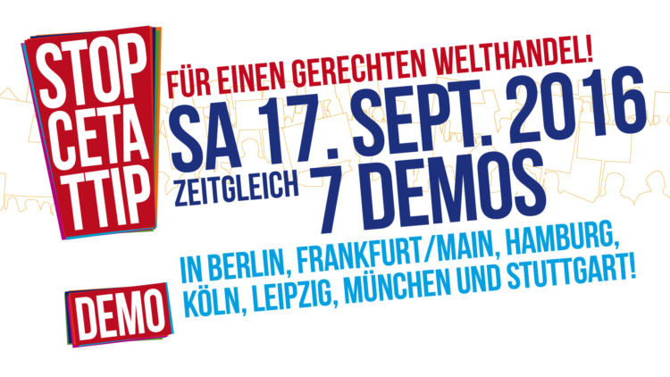 Großdemonstrationen am 17. September „CETA & TTIP stoppen! Für einen gerechten Welthandel!“
