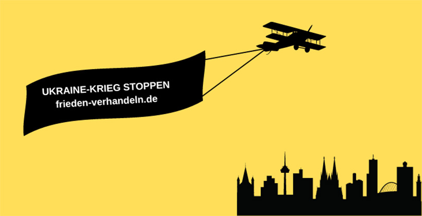 Netzwerk Friedenskooperative fordert Verhandlungen im Ukraine-Konflikt mit Flugzeugbanner über deutschen Städten