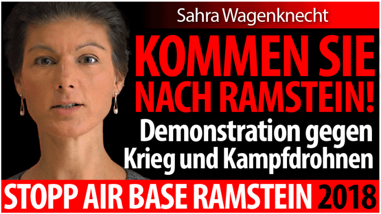 Aufruf der Stopp Air Base Ramstein Kampagne: Demonstration gegen Krieg und Kampfdrohnen Sahra Wagenknecht ruft dazu auf, sich an der Demonstration der Stopp Air Base Ramstein Kampagne am Samstag, den 30.06.2018 zu beteiligen. Weitere Informationen zur Demonstration unter: https://www.ramstein-kampagne.eu/demonstration-und-die-air-base-ramstein-schliessen/. Sahra…