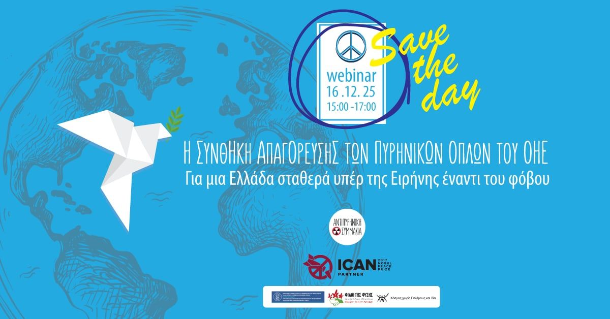 Η Αντιπυρηνική Συμμαχία διοργανώνει διαδικτυακό σεμινάριο με θέμα «Η Συνθήκη Απαγόρευσης των Πυρηνικών Όπλων του ΟΗΕ: Για μια Ελλάδα σταθερά υπέρ της Ειρήνης έναντι του φόβου» την Τρίτη, 16 Δεκεμβρίου 2025, 15.00-17.00. Σκοπός του σεμιναρίου είναι να ενημερώσει και να…