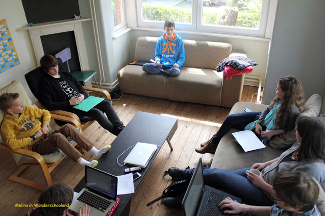 Από το συμβούλιο του Sudbury School Gent. Ο κανόνας λήψης αποφάσεων είναι «ένα άτομο, μία ψήφος». Η ψήφος του δασκάλου μετράει όσο και του μαθητή. Φωτογραφία: Ευάγγελος Βλαχάκης.