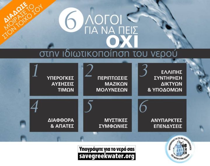 Υπενθυμίζουμε ότι τόσο οι Ευρωπαίοι όσο και οι Έλληνες πολίτες έχουν επανειλημμένα εκφραστεί με επίσημο τρόπο και τίθενται στην συντριπτική τους πλειοψηφία κατά της ιδιωτικοποίησης των υπηρεσιών ύδρευσης. Δεν νοείται διακυβέρνηση με βάση το Κράτος Δικαίου που δεν σέβεται αποφάσεις Ανώτατου Δικαστηρίου χώρας και δεν νοείται δημοκρατικό καθεστώς που αγνοεί επιδεικτικά τη βούληση των πολιτών.