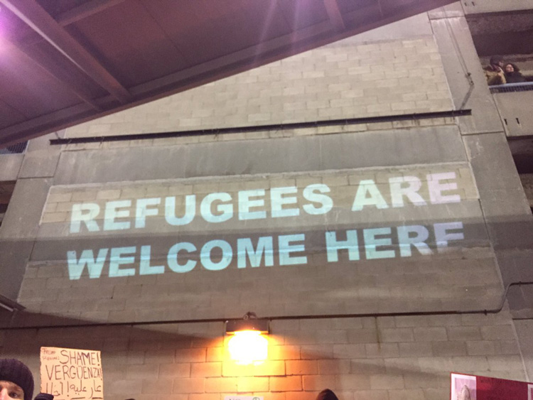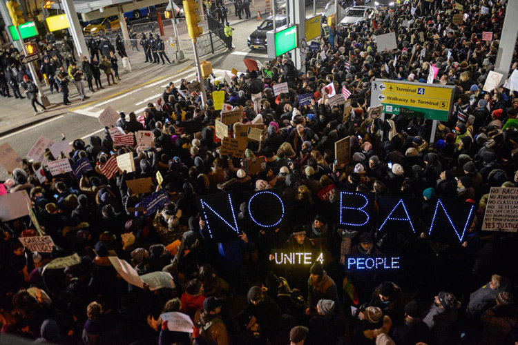Μαζικές διαδηλώσεις πραγματοποιήθηκαν σε πολλά αεροδρόμια των Ηνωμένων Πολιτειών, όταν οι αρχές ξεκίνησαν να απαγορεύουν την είσοδο στη χώρα και να κρατούν προσφυγές και μετανάστες, που προέρχονται από εφτά μουσουλμανικές κυρίως χώρες.