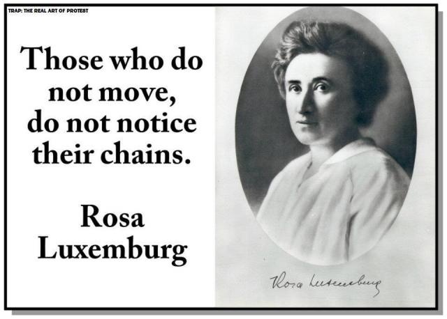 Η Ρόζα Λούξεμπουργκ δεν άφηνε και δεν αφήνει κανέναν αδιάφορο. Χωρίς συμβιβασμούς και με δυνατή φωνή υπερασπίστηκε τα πιστεύω της. Με ανθρώπινη ζεστασιά και συναρπαστικό ταμπεραμέντο ήταν σε θέση να κερδίσει οποιονδήποτε ερχόταν σε επαφή μαζί της χωρίς προκαταλήψεις. Αντίθετα, τρόμαζε όλους εκείνους που δεν ένιωθαν αντάξιοί της.