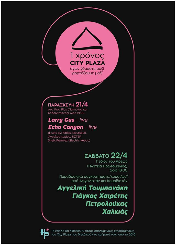 Σύμφωνα με την πρόσκληση, τα έσοδα θα διατεθούν στους απολυμένους εργαζομένους του City Plaza που διεκδικούν τα χρήματά τους από το 2010.