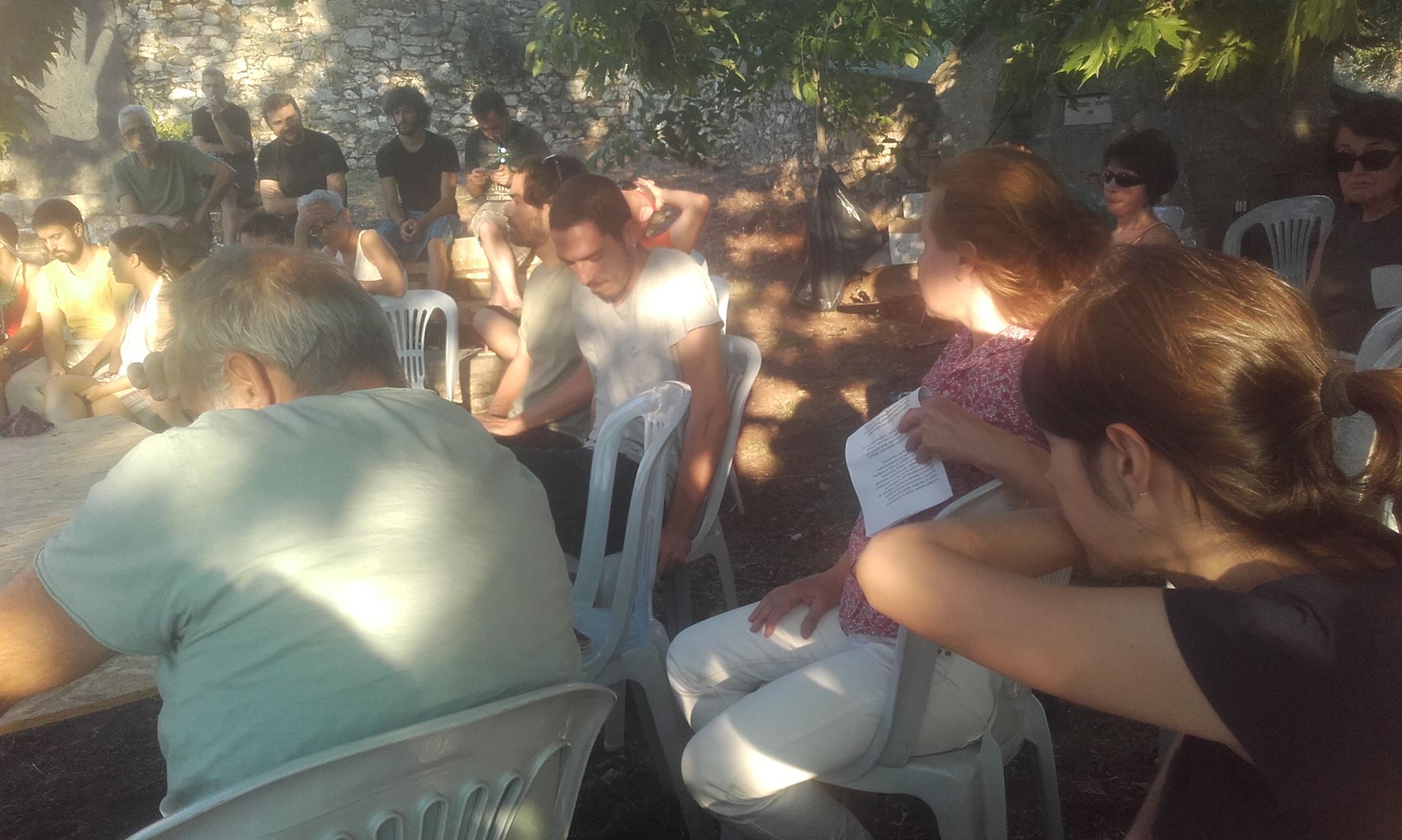 Η συντακτική ομάδα της ελληνικής PRESSENZA βρέθηκε στο 5ο φεστιβάλ ΓΗ & ΕΛΕΥΘΕΡΙΑ, που πραγματοποιήθηκε στα Βέρροια του Πάρνωνα. Το κείμενο “Ζούμε όπως παίξαμε“, που διάβασε εκ μέρους της ομάδας η συγγραφέας του, Ειρήνη Κοκκορού, φώτισε τη δεύτερη μέρα του φεστιβάλ μια διαφορετική πλευρά σε σχέση με την κρίση και το πού μπορεί να στραφεί το βλέμμα μας αναζητώντας απαντήσεις και ξεχασμένους δρόμους έμπνευσης. Η συζήτηση ήταν ζωηρή, με μεγάλη συμμετοχή νέων ανθρώπων. Πραγματοποιήθηκε κάτω από το μεγάλο πλάτανο του χωριού. Τη διοργάνωση είχε η ομάδα Activate_now.