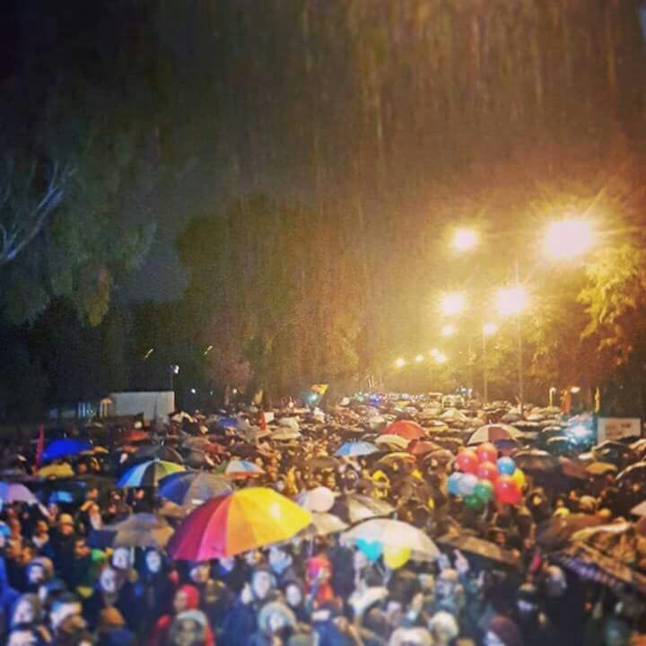 Τουλάχιστον 5000 άνθρωποι αψήφισαν τη βροχή και συγκεντρώθηκαν χτες σε ειρηνική διαμαρτυρία στη βόρεια Λευκωσία υπέρ της ειρήνης, της δημοκρατίας, της ελευθερίας έκφρασης και ενάντια στο φασισμό. Εκτός από Τουρκοκύπριους, βάδισαν μαζί ΕλληνοΚύπριοι, Τούρκοι και Κούρδοι, όπως μεταδίδει από το twitter της η Esra Aygin και το Unite Cyprus Now.