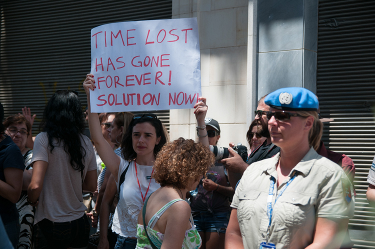 Τιζέν: Το «Unite Cyprus Now» μαζεύεται στην Νεκρή Ζώνη που είναι η περιοχή μεταξύ των ελληνοκυπριακών και τουρκοκυπριακών σημείων ελέγχου. Αυτή η περιοχή είναι ένα μικρό μέρος της ελεγχόμενης από τον ΟΗΕ περιοχής (Νεκρή Ζώνη) η οποία έχει μήκος περίπου 200 χιλιόμετρα σε όλο το νησί και καλύπτει περίπου 350 τετραγωνικά χλμ. Μαζευόμαστε μαζί και τραγουδάμε, κρατάμε πλακάτ προωθώντας τα μηνύματα, χορεύουμε, διοργανώνουμε παιδικά παιχνίδια και πολλές άλλες δραστηριότητες για να τραβήξουμε την προσοχή των ανθρώπων που διασχίζουν και πάνε στην «άλλη πλευρά». Αυτό το τμήμα της Νεκρής Ζώνης είναι ένα από τα σημεία ελέγχου των επτά συνολικά που χρησιμοποιείται πιο συχνά για τους πεζούς.