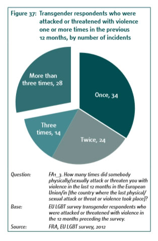 Δύο πίνακες από την πιο πρόσφατη έρευνα του FRA, που αναφέρονται η πρώτη σε περιστατικά βίας απέναντι στα τρανς άτομα και η δεύτερη σε μετανάστευση σε άλλη χώρα εντός ΕΕ, στην οποία τα ΛΟΑΤ+ άτομα δεν μπόρεσαν να απολαύσουν εξίσου με straight άτομα τα δικαιώματά τους.