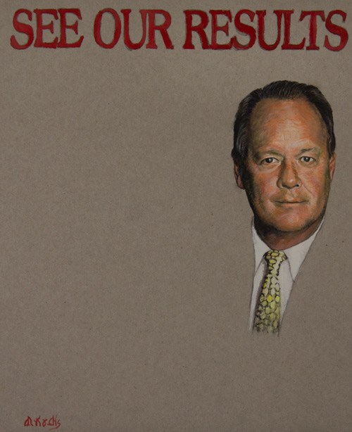 Βρήκα ότι η λειτουργία αυτών των διαφημίσεων, και ειδικά η χρήση της προσωπογραφίας, είναι συναφής με αυτή των εικόνων της βυζαντινής αγιογραφίας, που αποτελεί μέρος του δικού μου παρελθόντος. Είναι και τα δύο λειτουργικά αντικείμενα, δεν προορίζονται ως «καθαρή τέχνη», και η μεσολαβητική τους χρησιμότητα μπορεί να ερμηνευτεί ως άξονας (αιτούμενος-δικηγόρος-δικαιοσύνη και πιστός-Άγιος-σωτηρία). Και τα δύο απεικονίζουν «προσωπικότητες ισχύος» που λειτουργούν ως στερεότυπα επιτυχίας και πρότυπα προς μίμηση.