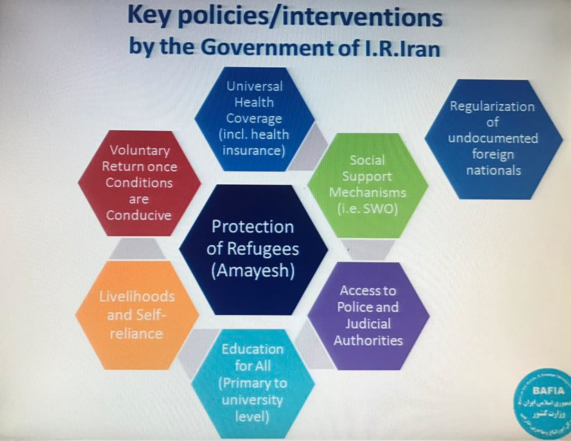 Περίπου 3.000.000 Αφγανοί πρόσφυγες έχουν βρεθεί σε προσφυγικές εγκαταστάσεις υποδοχής στο Ιράν. Σύμφωνα με τα όσα λέει η Ύπατη Αρμοστεία πρόκειται για έναν από τους πιο μεγάλους προσφυγικούς σχεδιασμούς παγκοσμίως και ταυτόχρονα από τους πιο προοδευτικούς. Με έμφαση στην υγεία, τις συνθήκες στέγης και την παιδεία, το Ιράν έχει σκοπό μέχρι το τέλος του 2018 το 80% των παιδιών να είναι εγγεγραμμένα στα σχολεία και να παρακολουθούν εκπαίδευση με τα λιγότερα δυνατά εμπόδια.
