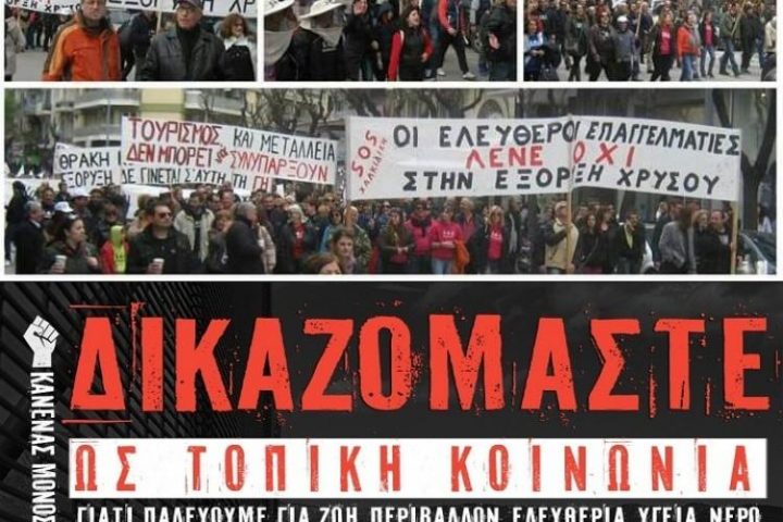 «Αγωνιζόμαστε για την προστασία των ζωτικών πόρων του τόπου μας από εξορυκτικά συμφέροντα που δεν έχουν σκοπό να εξυπηρετήσουν τις ανάγκες των ανθρώπων, άλλα μόνο ανάγκες μετόχων και χρηματιστηρίων. Η ποινικοποίηση αυτού του αγώνα, που εξυπηρετεί τη λογική «επενδύσεις με κάθε κόστος», δεν μπορεί να γίνει αποδεκτή σε μια ευνομούμενη πολιτεία» τονίζει σε ανακοίνωσή του το «Συντονιστικό Ιερισσού ενάντια στην εξόρυξη χαλκού-χρυσού» επισημαίνοντας πως «στον αντίποδα μιας πολιτικής διαπλοκής δεκαετιών που απέκλεισε την περιοχή μας από ένα πραγματικά βιώσιμο μέλλον στο βωμό της επέκτασης της μεταλλευτικής δραστηριότητας, διεκδικούμε τα αυτονόητα».