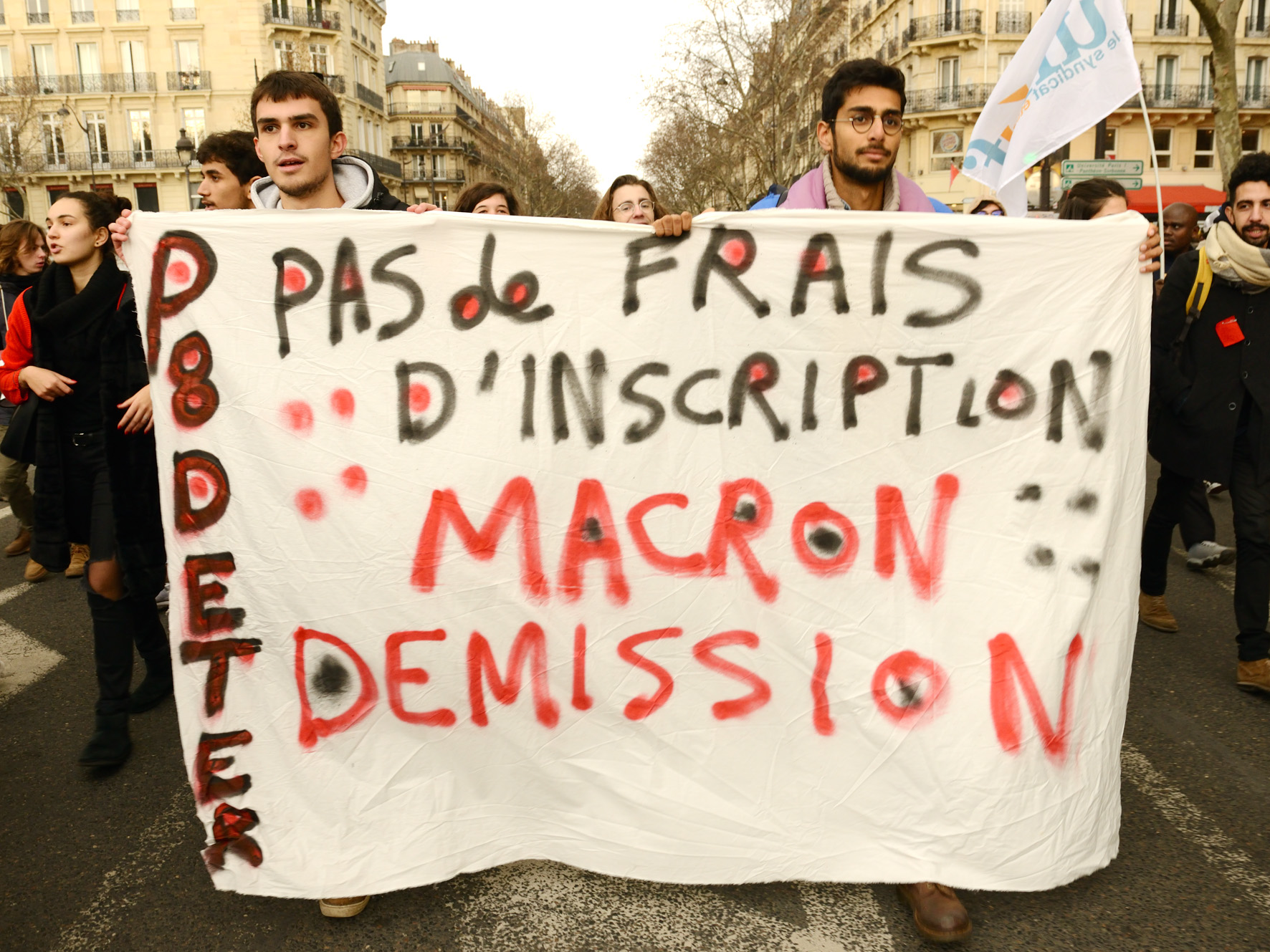 Τον Αύγουστο του 2018, πριν δηλαδή την άφιξή της στο Παρίσι, η Δ. εξασφάλισε οριακά μια θέση για ένα Πτυχίο στην Ιστορία στο Πανεπιστήμιο της Σορβόννης. Ένα μήνα μετά, ξεκίνησε τις σπουδές της και μόλις δύο μήνες μετά την έναρξη για σπουδαστές εθνικοτήτων εκτός Ε.Ε. Ακόμα κι αν το μέτρο αυτό δεν την επηρεάζει άμεσα για τη συνέχιση του Πτυχίου της, το όνειρό της να κυνηγήσει τις σπουδές της στη Γαλλία καταρρέει καθώς οι δαπάνες εγγραφής για ένα κύκλο μεταπτυχιακών σπουδών (Μάστερ), θα περάσουν απ’τα 243 στα 3770 Ευρώ. Ένα κόστος που αποφαίνεται δυσπρόσιτο για εκείνη και την οικογένειά της. Έτσι, η Δ. έχει στο μυαλό της δύο εναλλακτικές: Εξετάζει το ενδεχόμενο να ζητήσει μία υποτροφία για να ακολουθήσει ένα Μάστερ (γνωρίζοντας ότι πρόκειται για έναν πραγματικό αγώνα δρόμου) ή να κάνει ό,τι είναι απαραίτητο για να μην περάσει αυτή η μεταρρύθμιση.