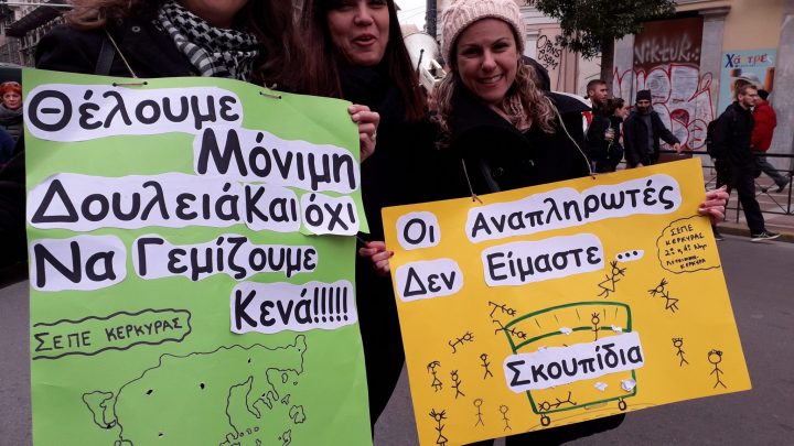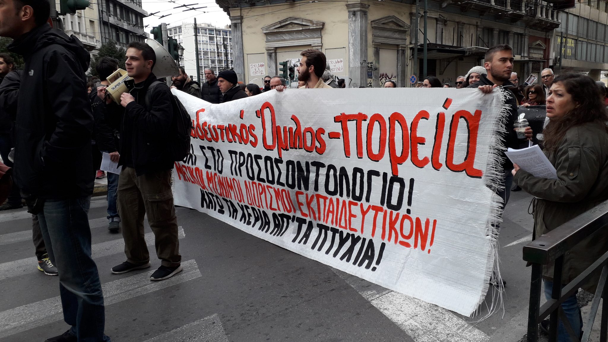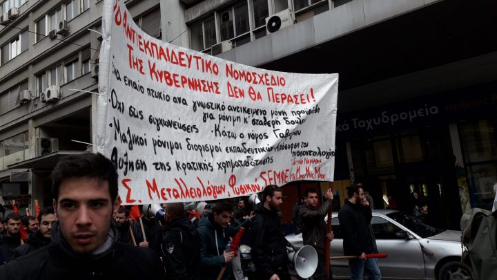 Οι εκπαιδευτικοί κήρυξαν 24ωρη απεργιακή κινητοποίηση και βγήκαν χτες στους δρόμους της Αθήνας για να συνεχίσουν τις διαμαρτυρίες τους έναντι του νομοσχεδίου που φέρνει στη Βουλή ο Υπουργός Παιδείας, Κ. Γαβρόγλου. Βασική διεκδίκηση αποτελεί η αντίθεσή τους στο προτεινόμενο σύστημα διορισμών. Μαζί τους και δυνάμεις της αριστεράς, όπως το ΠΑΜΕ, η ΛΑΕ, η ΑΝΑΡΣΥΑ. Η διαμαρτυρία ξεκίνησε με τραγούδια αλλά η εξέλιξή της στο Σύνταγμα δεν ήταν ομαλή καθώς δυνάμεις των ΜΑΤ επιτέθηκαν τυφλά εναντίον των διαδηλωτών με δακρυγόνα και χειροβομβίδες κρότου-λάμψης. Η Υπουργός Προστασίας του Πολίτη, Ο. Γεροβασίλη, χαρακτήρισε απαράδεκτες τις ενέργειες των ανδρών των ΜΑΤ και διατάχθηκε ΕΔΕ.