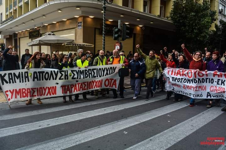 Κατά τη διάρκεια της πορείας συναντήθηκαν μπροστά στο υπουργείο Εσωτερικών με τους «παρατασιούχους» των δήμων που διαδήλωναν την ίδια ώρα. (Φωτογραφία aftodioikisi.gr και εργατική αλληλεγγύη).