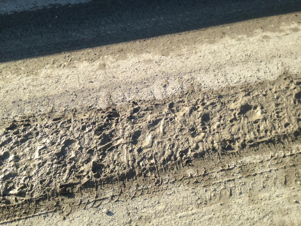 Βρεθήκαμε στο σημείο να εγκαταλείψουμε την περιοχή γιατί πατάμε και ουσιαστικά κουβαλάμε στις ρόδες του αμαξιού μας αυτό το τέλμα, που ξεφορτώνουν τα φορτηγά του εργοστασίου. Υπάρχει υπερβολική σκόνη, υπερβολική μυρωδιά και αναγκαστήκαμε να φύγουμε.
