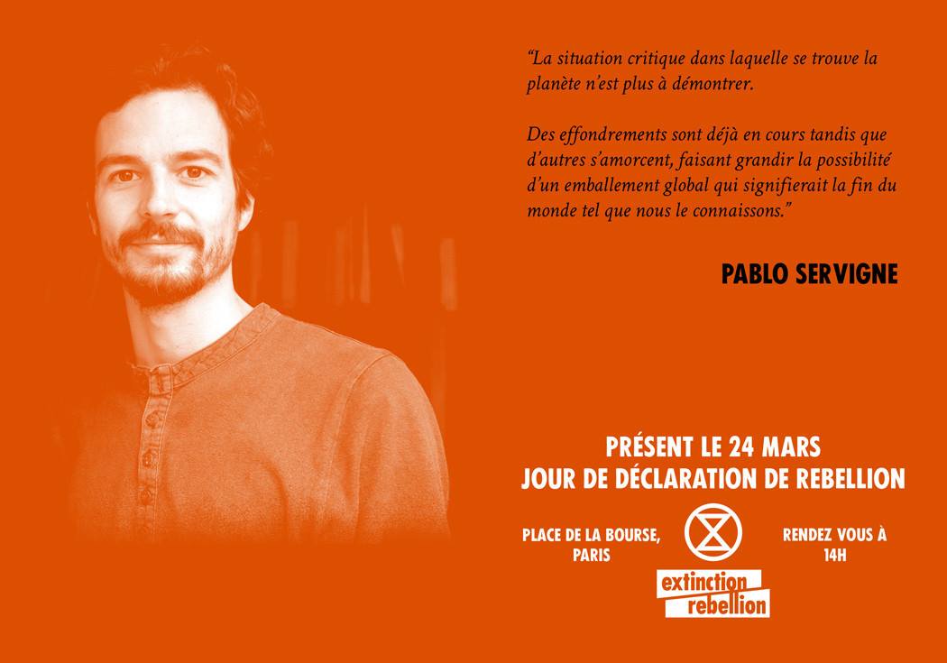 Είναι καιρός να οργανωθούμε, φυσικά είναι πολύ αργά για αρκετά πράγματα, αλλά υπάρχει πάντα χρόνος να προσπαθήσουμε, όταν καταστρέφουν το σπίτι σου, όταν σε τραυματίζουν ή όταν σκοτώνουν τ’αδέρφια σου, δεν τα παρατάς, ξεσηκώνεσαι, επαναστατείς. Βρισκόμαστε σε πόλεμο κι ο εχθρός είναι παντού. Είναι στους G7, στις πολυεθνικές, στη διοίκηση, αλλά επίσης στα νοικοκυριά, μέσα μας. Ξεκινάει από εμάς. Θάρρος είναι να πας και να παλέψεις με όλους και όλα, τους τοξικούς για την κοινωνία και τον πλανήτη κανόνες. Το θάρρος όμως χρειάζεται για να βρούμε και να αντιμετωπίσουμε τις δικές μας σκιές. Και η δειλία δεν σημαίνει να μη τα δούμε, να τα σπρώξουμε κάτω απ’ το χαλί, να προσφύγουμε και να κρυφτούμε πίσω από τους άλλους ή το σύστημα. Δειλία είναι να βάλουμε το κέρδος πάνω απ’τη ζωή, ολημερίς στη δουλειά και το βράδυ να αγκαλιάζουμε και να φιλάμε τα παιδιά μας. Δειλία είναι να δηλώνουμε όπως ο διευθυντής μίας ασφαλιαστικής εταιρείας: ”Δεν ασφαλίζουμε έναν κόσμο που υπερθερμαίνεται +4 βαθμούς. Μα, πες μου μπαμπά, γιατί οι πρόγονοί μας δεν φρόντισαν; Ζούμε τα τελευταία παράθυρα της κλιματικής δράσης. Είναι ήδη πολύ αργά για κάποια είδη του ζωϊκού και του φυτικού βασιλείου. Για πληθυσμούς ζωντανών οργανισμών που είναι ακόμα εδώ, που μας κοιτούν και εξαρτώνται από εμάς. Είμαστε άρρηκτα συνδεδεμένοι μαζί τους. Είμαστε η τελευταία γενιά που καλούμαστε να επιλέξουμε αν θα καταστραφούμε ή όχι. Και όλα αυτά τα κινήματα, οι πορείες για το κλίμα, τα Κίτρινα Γιλέκα ή κι εμείς ακόμα οι Extinction Rebellion, όλα αυτά δεν πρέπει να σταματήσουν! Μπορούν να συγκλιθούν, μπορούν να συναντηθούν, δεν θα πρέπει να σταματήσουν. Φυσικά θα μας καπελώσουν. Θα μας ποινικοποιήσουν και θα πρέπει να είμαστε έτοιμοι. Θα πρέπει να μείνουμε ενωμένοι, έξυπνοι, ευαίσθητοι, εν βρασμώ και να ακούμε. Είμαστε ένα κίνημα νόμιμης άμυνας και όπως λέει και ένας αμερικανός ακτιβιστής, ο Paul Hawken: ”Είμαστε το ανοσοποιητικό σύστημα της Γης που ξεσηκώνεται.” Πίσω μας υπάρχει μία μακρά παράδοση πολιτικής ανυπακοής. Δεν είμαστε οι πρώτοι, αλλά ίσως να είμαστε οι τελευταίοι.