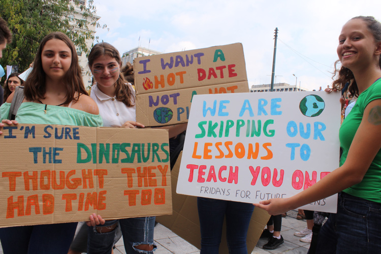 Με συνθήματα όπως: “We’re learning for a future we don’t have”, “Human change, not climate change”, “Για να σας δώσουμε ένα μάθημα, χάνουμε τα δικά μας”, “Make love, not CO2” κ.α. οι μαθητές και οι μαθήτριες διαμαρτυρήθηκαν και αυτήν την Παρασκευή απαιτώντας λύσεις για την κλιματική αλλαγή, τις πυρκαγιές των δασών, τη μόλυνση και τη βιωσιμότητα του πλανήτη μας. Σε πολλές πόλεις σε όλο τον κόσμο οι μαθητές και οι μαθήτριες αποφάσισαν να δράσουν και να βγουν στους δρόμους απαιτώντας λύσεις άμεσα, ώστε να διασφαλιστεί το μέλλον τους και το μέλλον των επόμενων γενιών.