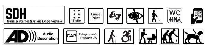 καθώς και με ακουστική περιγραφή για τυφλές/ούς και ανθρώπους με προβλήματα όρασης.