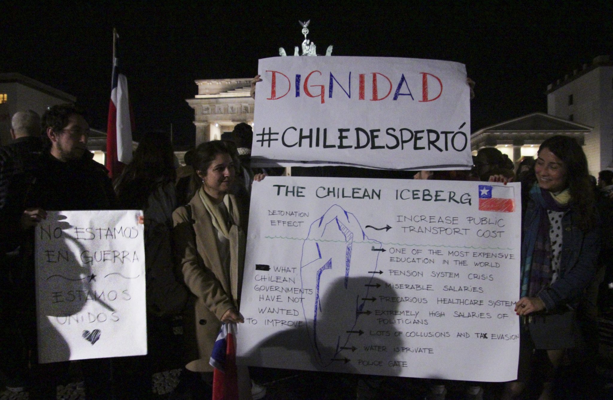 Ο στόχος αυτός εκφράστηκε με σαφήνεια στη διαδήλωση του Βερολίνου, στην οποία συμμετείχαν περισσότεροι από 700 Χιλιανοί, που βρήκαν το σπίτι τους σε αυτή την κοσμοπολίτικη και πολύχρωμη πόλη, καθώς και Βερολινέζοι που βγήκαν στους δρόμους για να εκδηλώσουν την αλληλεγγύη τους.