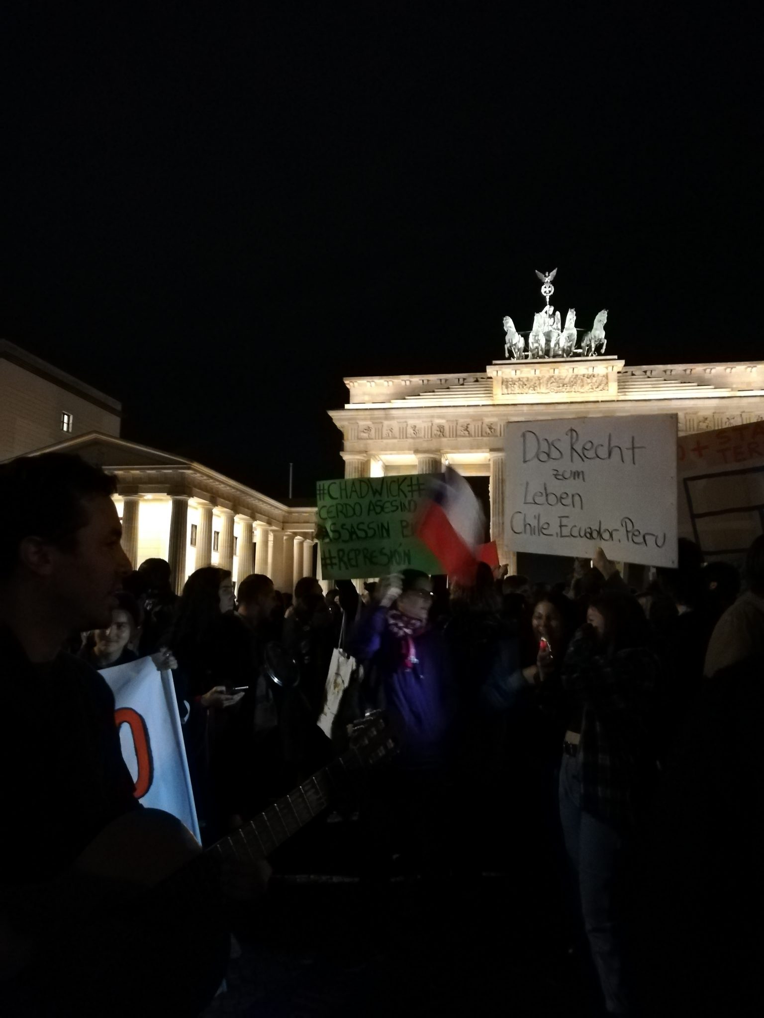 Στις 11 Σεπτεμβρίου 1973 ο χιλιανός στρατός πραγματοποίησε πραξικόπημα στην εκλεγμένη, προοδευτική και σοσιαλιστική κυβέρνηση του Σαλβαδόρ Αλιέντε, η οποία διατηρούσε καλές σχέσεις με τη τότε Λαϊκή Δημοκρατία της Γερμανίας και είχε επίσης την υποστήριξη των προοδευτικών δυνάμεων του Δυτικού Βερολίνου. Μετά το βαρύ πραξικόπημα υπό την ηγεσία του Augusto Pinochet, και στις δύο πλευρές της Πύλης του Βρανδεμβούργου, που τις χώριζε ένα τείχος, οι άνθρωποι σήκωσαν το ανάστημά τους και έδειξαν την αλληλεγγύη τους στο βασανισμένο λαό της Χιλής. Οι διαμαρτυρίες σταμάτησαν, σίγησαν μετά την βίαιη καταστολή τους από τη στρατιωτική δύναμη και μέχρι σήμερα υπάρχουν χιλιάδες εξαφανισμένοι κρατούμενοι.