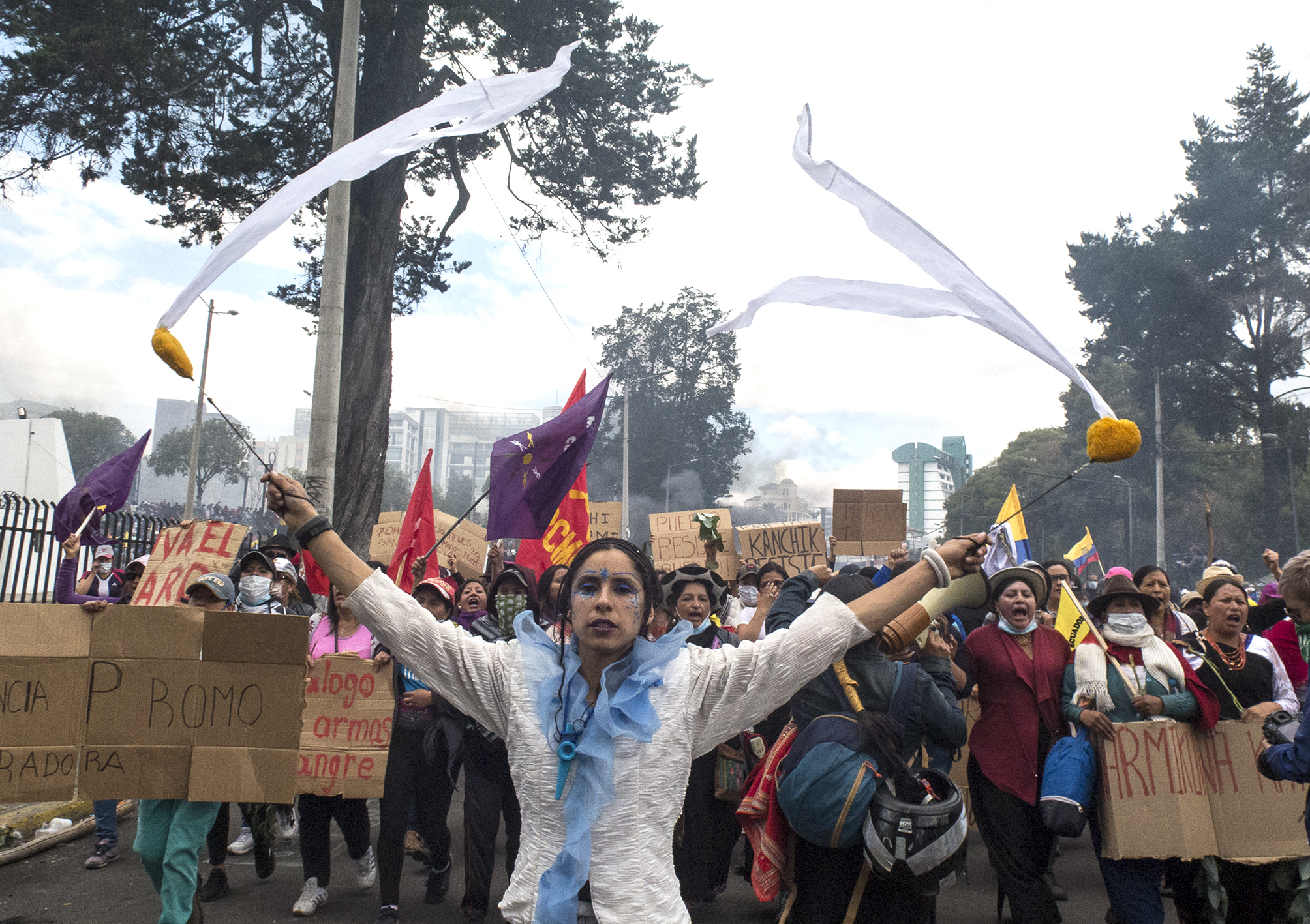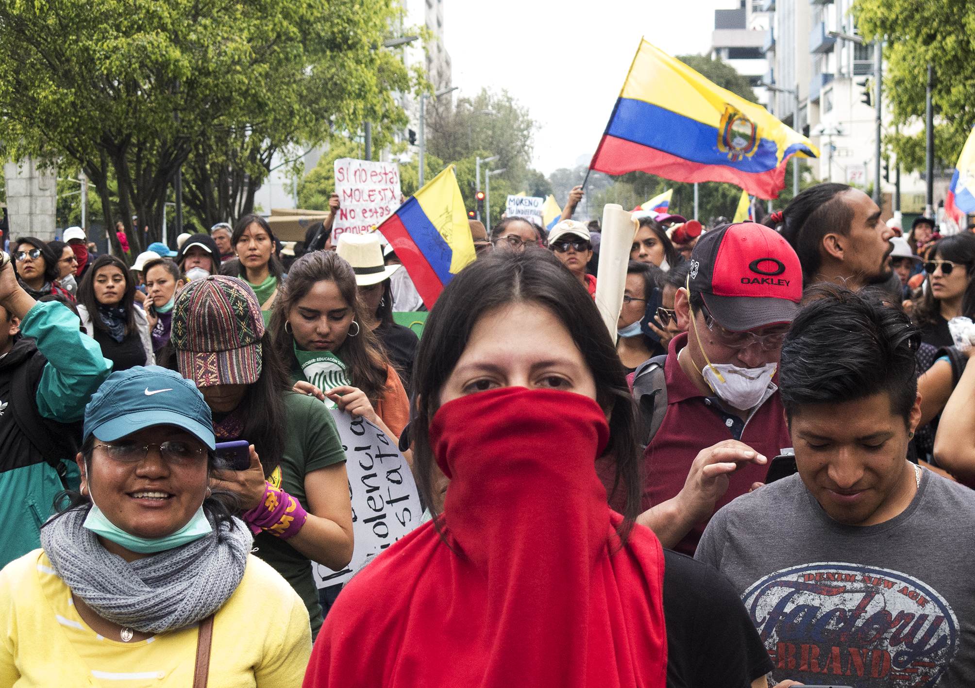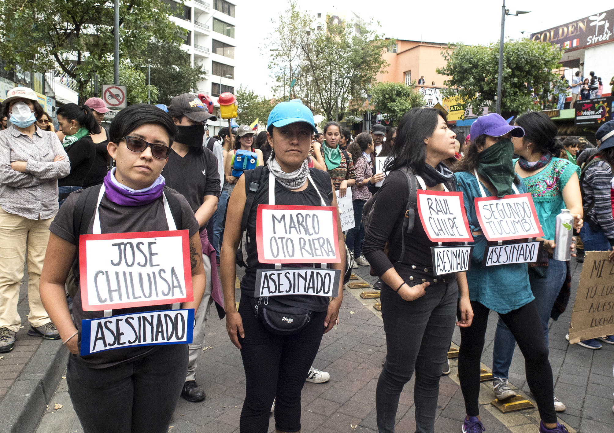 Μέσα σε λιγότερο από 24 ώρες γυναικείες συλλογικότητες οργάνωσαν ειρηνική πορεία το Σάββατο 12 Οκτωβρίου, το πρωί, στο Κίτο. Η πορεία ξεκίνησε από το Πάρκο “El Arbolito” ακριβώς στη ζώνη που έγιναν τα προηγούμενα εικοσιτετράωρα οι πιο βίαιες συγκρούσεις των διαδηλωτών με δυνάμεις καταστολής της κυβέρνησης.