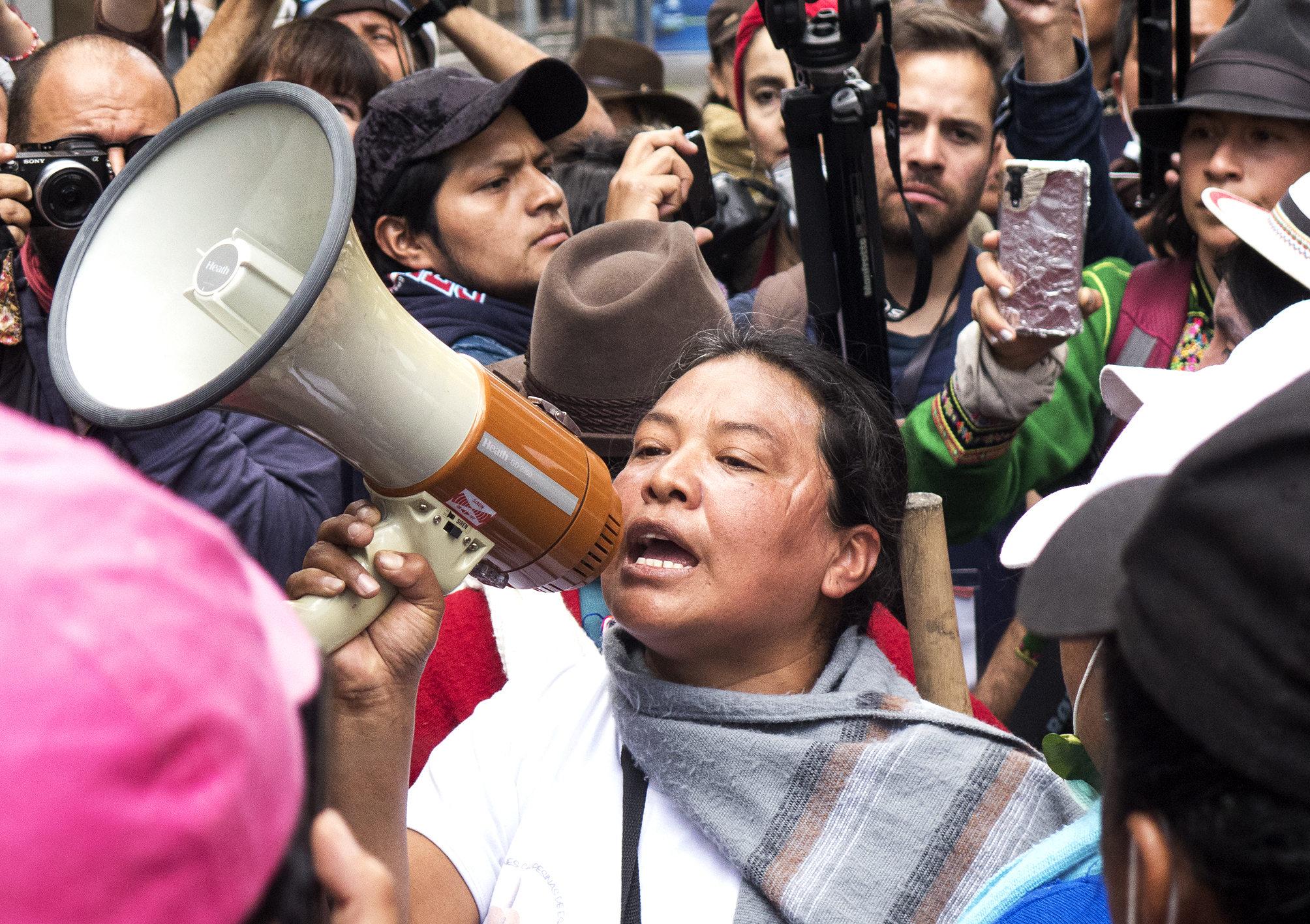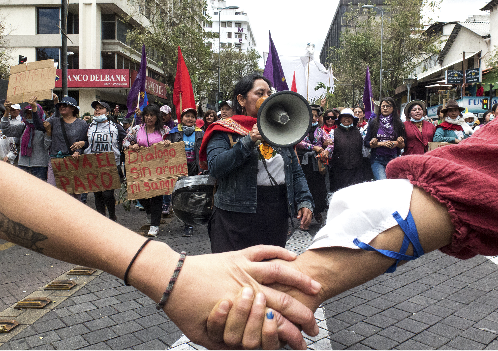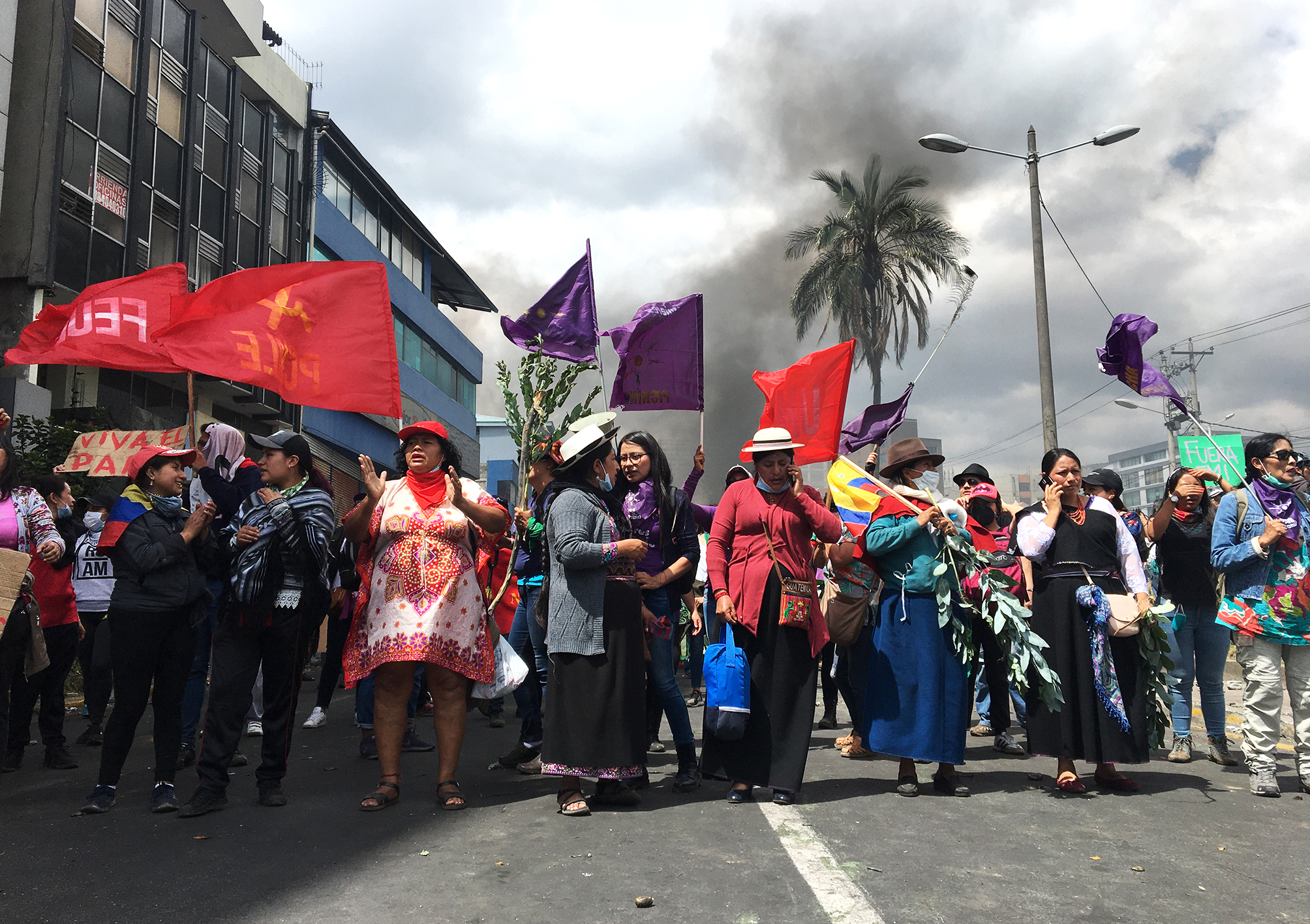 Μέσα σε λιγότερο από 24 ώρες γυναικείες συλλογικότητες οργάνωσαν ειρηνική πορεία το Σάββατο 12 Οκτωβρίου, το πρωί, στο Κίτο. Η πορεία ξεκίνησε από το Πάρκο “El Arbolito” ακριβώς στη ζώνη που έγιναν τα προηγούμενα εικοσιτετράωρα οι πιο βίαιες συγκρούσεις των διαδηλωτών με δυνάμεις καταστολής της κυβέρνησης.