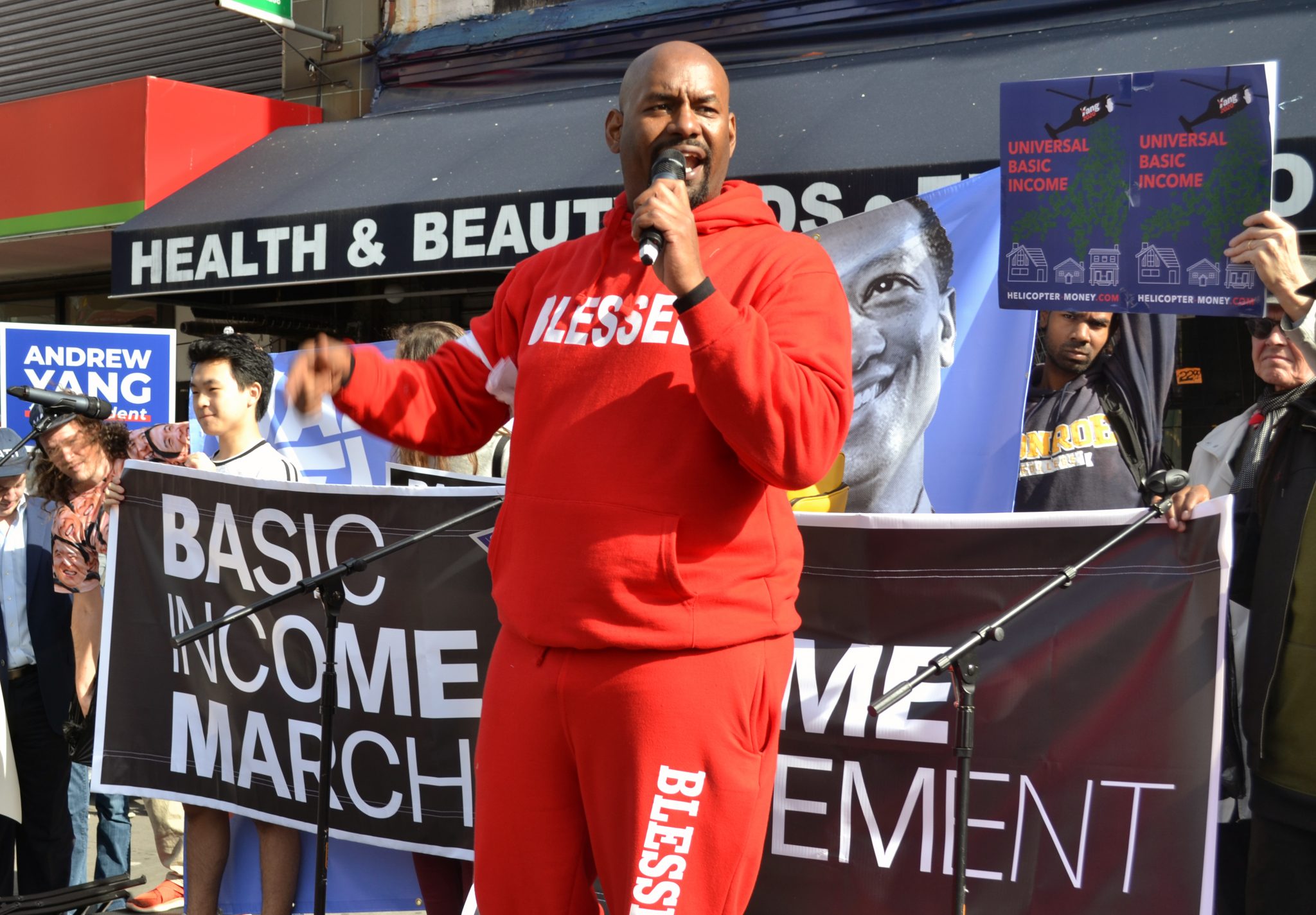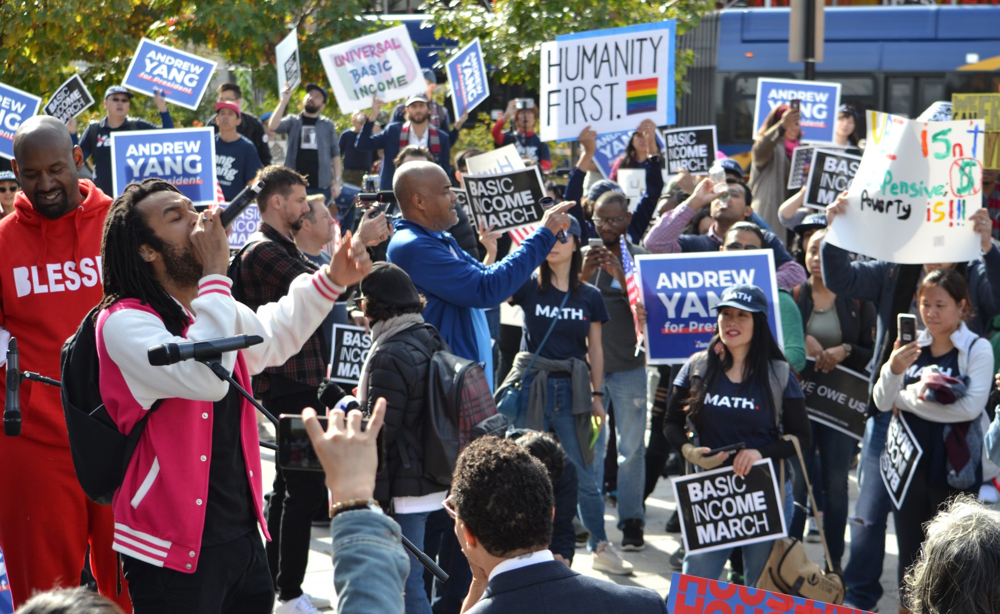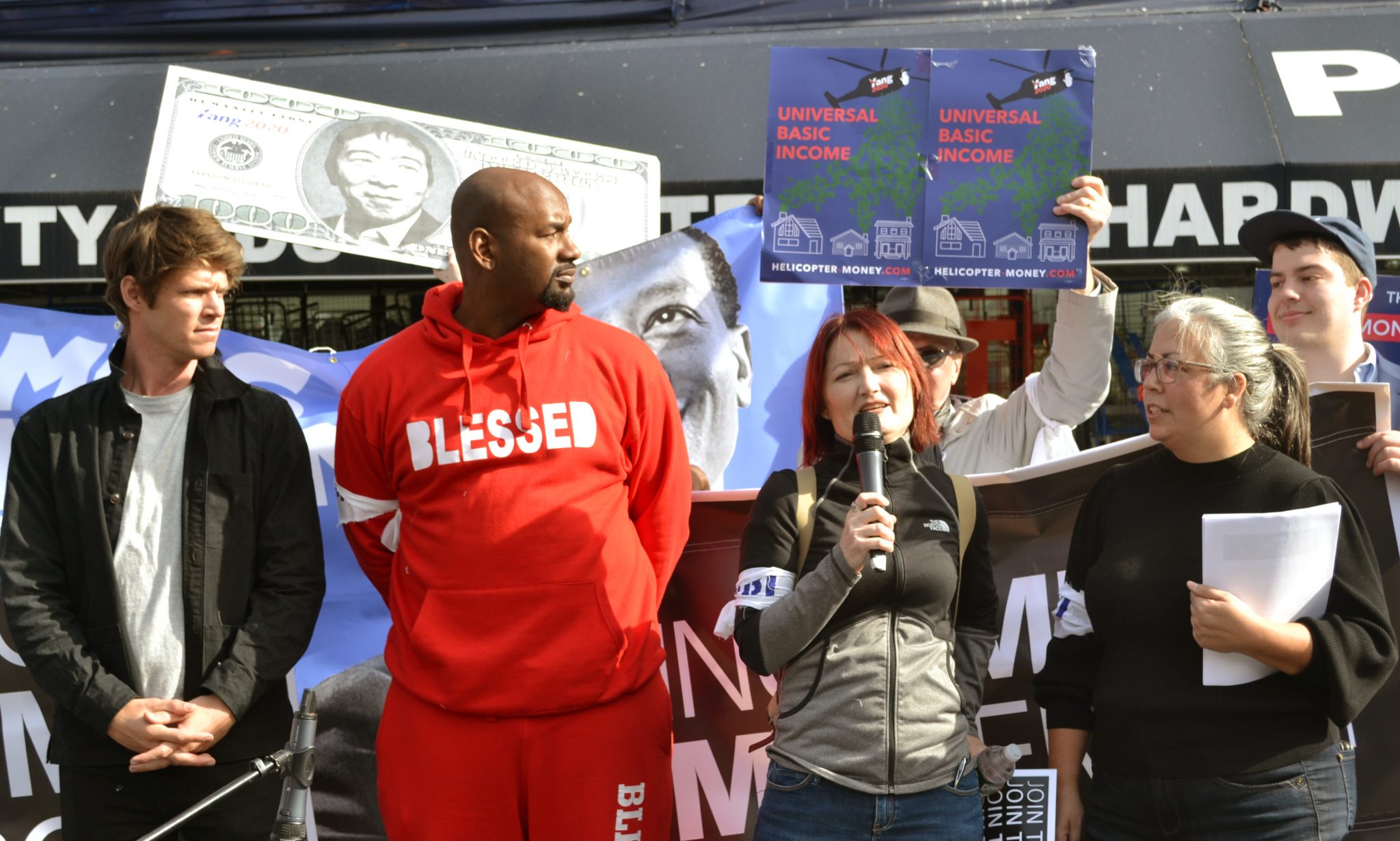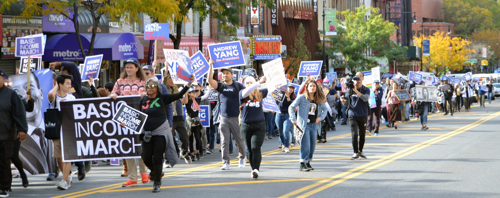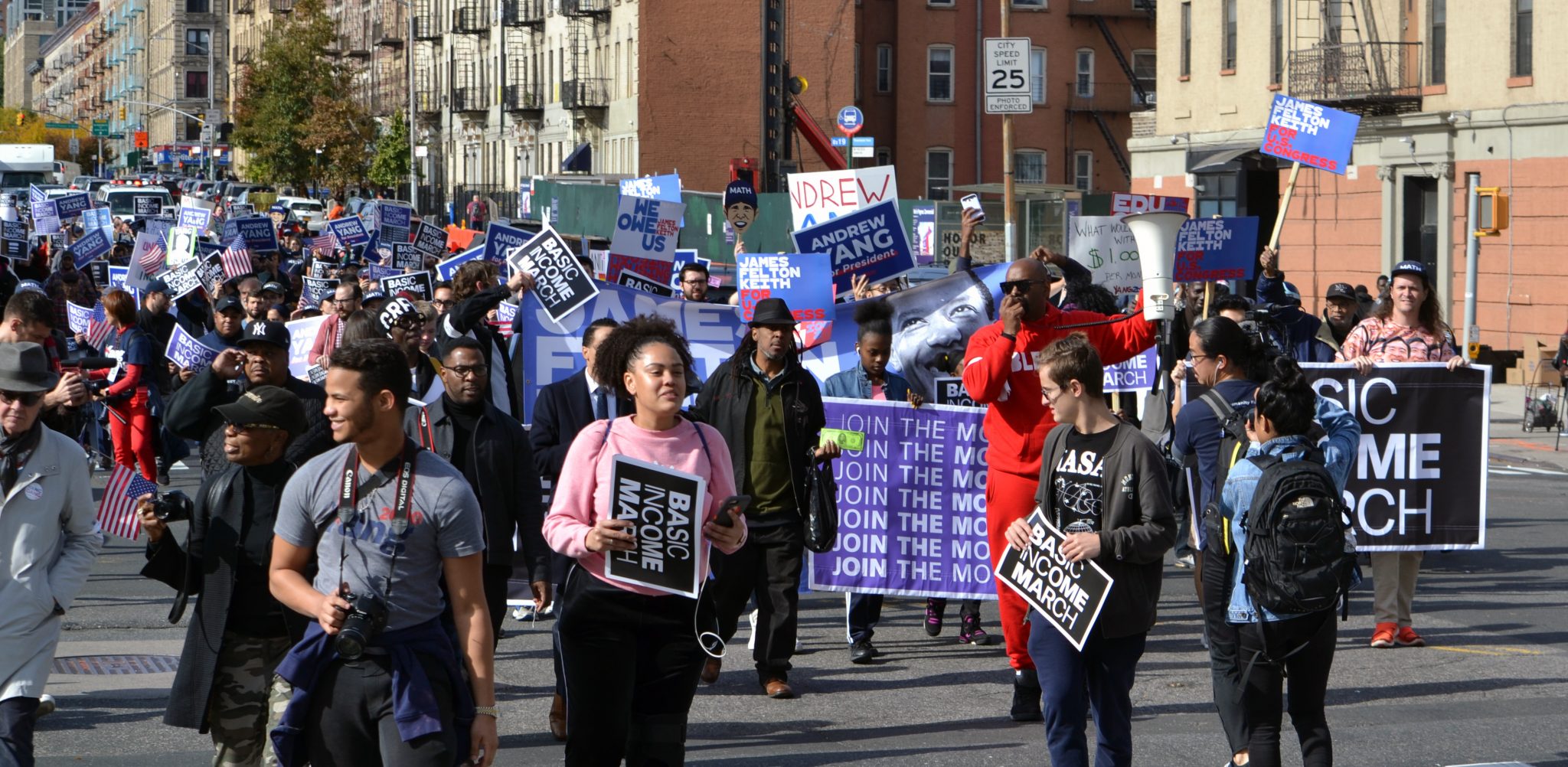 Μέλη της ομάδας της Pressenza της Νέας Υόρκης συμμετείχαμε στην πορεία για το βασικό εισόδημα που διεξήχθη το Σάββατο, 26 Οκτωβρίου. Η πρωτοβουλία ξεκίνησε από την Diane Pagen και τον υποψήφιο για το αμερικανικό κονγκρέσο, James Felton Keith (JFK), ως ένα μέσον για να μάθουν οι άνθρωποι για το θέμα. Μαζί στην πορεία ήταν πολλές κοινότητες και μεταξύ του πλήθους και οι Yang Gang, που φορούσαν το καπελάκι υποστήριξης του υποψηφίου για την Προεδρία, Andrew Yang. Ο κόσμος φώναζε: “Τι ζητάμε; βασικό εισόδημα τώρα!”και “Τα χρήματα δεν είναι πρόβλημα, δυναμώστε το λαό”. Η Νέα Υόρκη συμμετείχε σε παγκόσμιο αίτημα για το καθολικό βασικό εισόδημα, που εξελίσσεται σε έξι χώρες και εικοσιτρείς πόλεις όπως η Σεούλ, το Άμστερνταμ, η Μποκοτά, η Ιστανμπούλ, η Κουμπούγκου, το Σαν Φρανσίσκο, και άλλες.