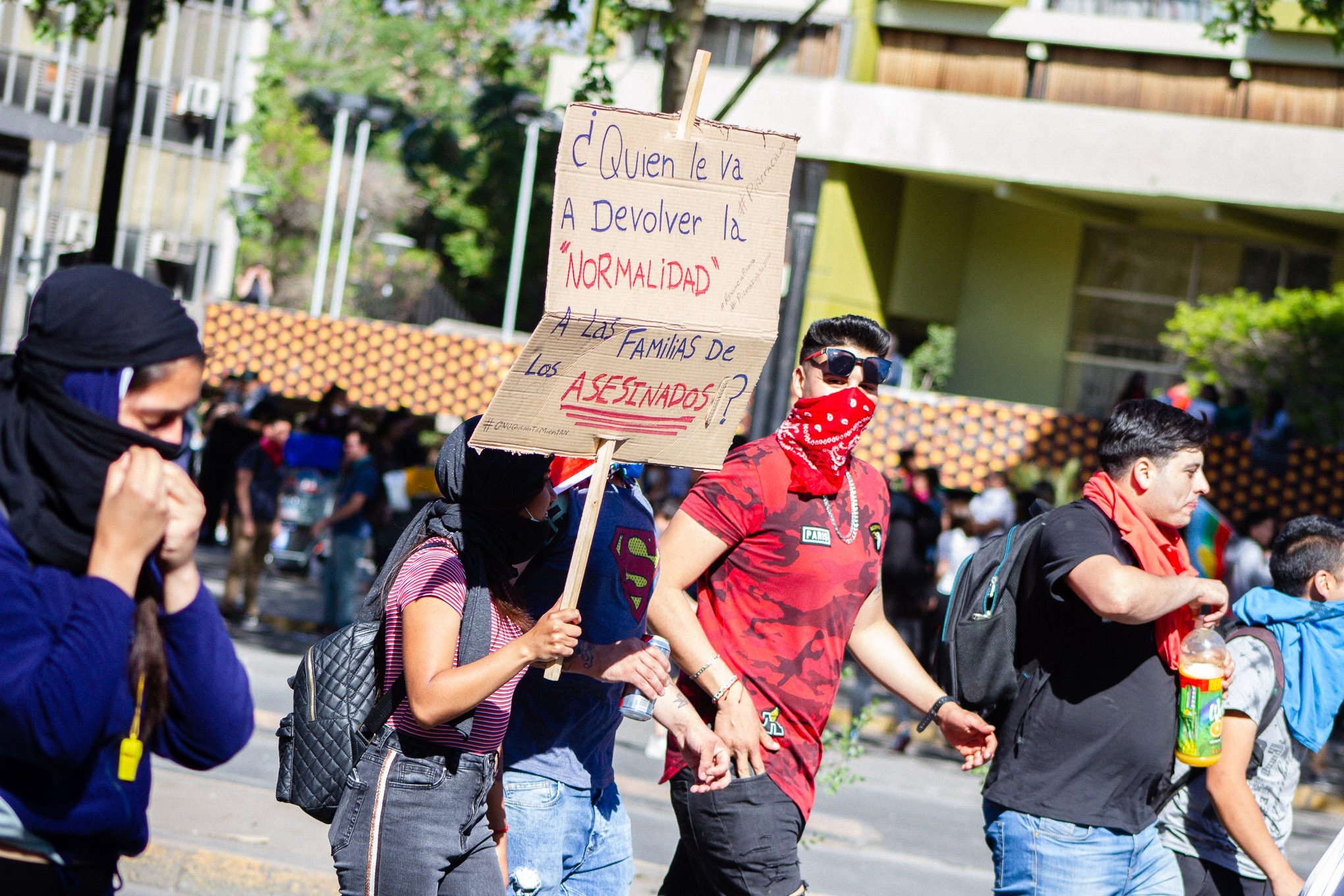 Η εκπρόσωπος της κυβέρνησης μίλησε χθες το βράδυ για την πορεία των “ανταρτών”. Οι παρακάτω εικόνες όμως μιλούν μόνες τους. (Σ.τ.σ.: στις φωτογραφίες εμφανίζονται συνθήματα όπως: Στη Χιλή μας σκοτώνουν, η εργασία είναι δικαίωμα και όχι ένδειξη αλληλεγγύης, ποιος θα επιστρέψει την “κανονικότητα” στις οικογένειες των δολοφονημένων;, σήμερα γεννιέται η νέα δύναμη, δεν είμαστε σε πόλεμο αλλά μας σκοτώνουν, αυτά συμβαίνουν στη Χιλή – είμαστε χιλιάδες αλλά κάποιοι λείπουν, στη Χιλή γίνονται παραβιάσεις ανθρωπίνων δικαιωμάτων).