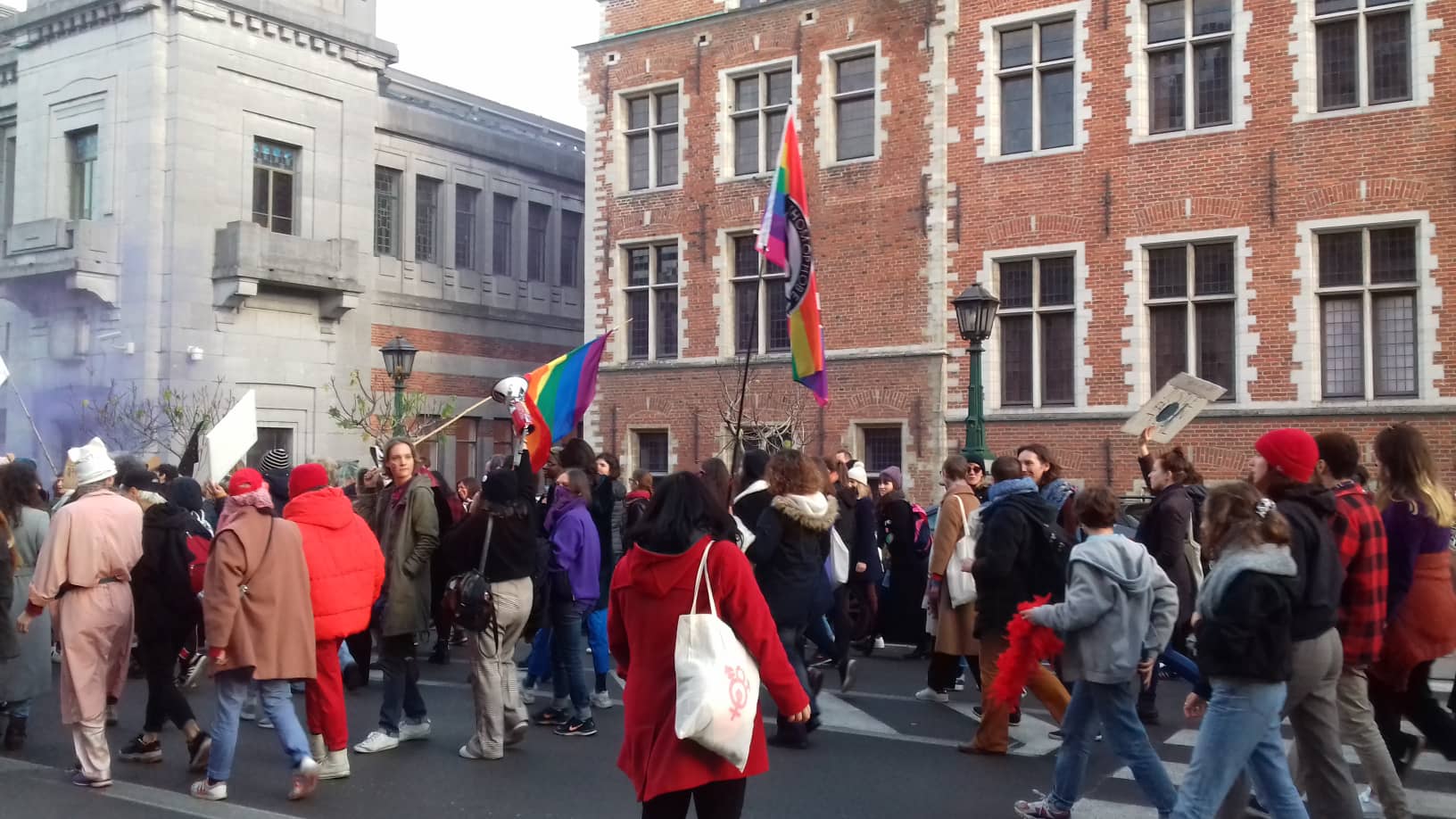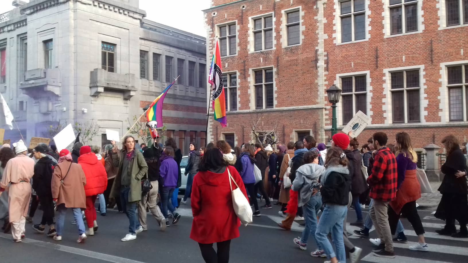 Χτες Κυριακή τουλάχιστον 10.000 άνθρωποι κατέβηκαν στις Βρυξέλλες σε πορεία από τον κεντρικό σιδηροδρομικό σταθμό προς το δικαστικό μέγαρο. Στην κατάληξή της, η διαμαρτυρία ήταν “ηχηρή”, καθώς οι δυνατές φωνές και η ειρηνική φασαρία που προκλήθηκε είχε σκοπό να αντιπαρατεθεί στη σιωπή που υπάρχει γύρω από τις γυναικοκτονίες.