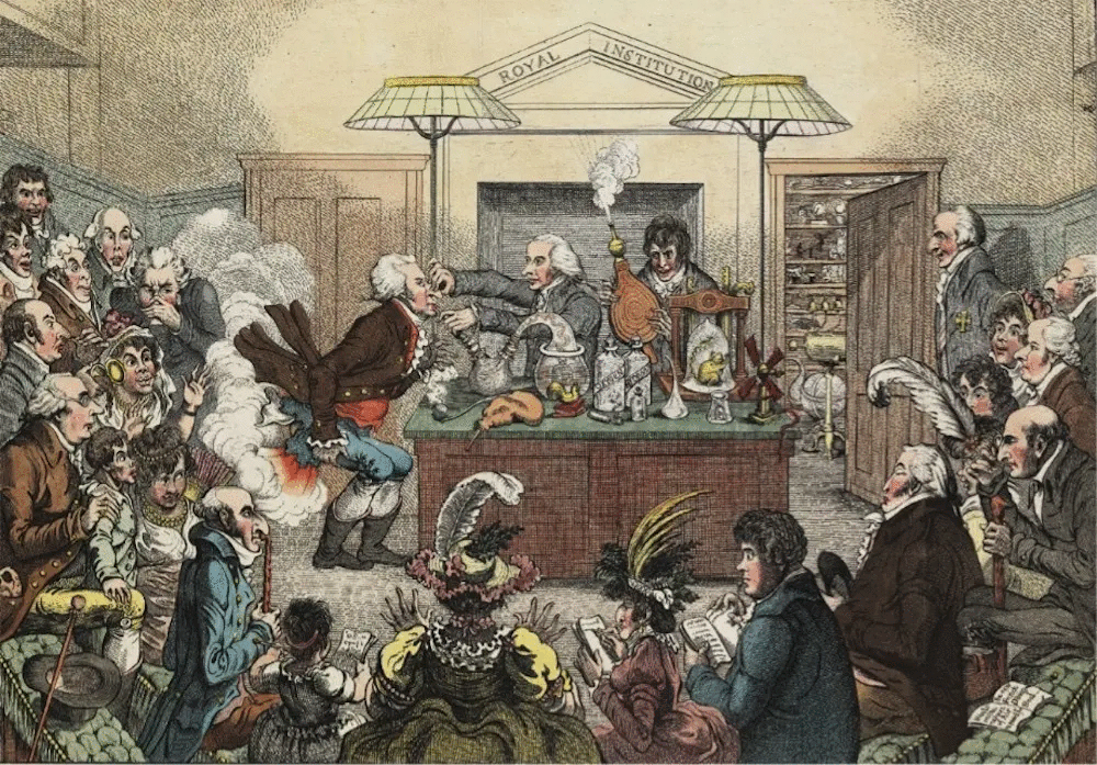 Για την ιστορία: παλαιότερα ήταν ευρύτερα γνωστό ως ιλαρυντικό αέριο. Οι παρακάτω γελειογραφίες δείχνουν την διείσδυσή του στην τότε υψηλή κενωνία.