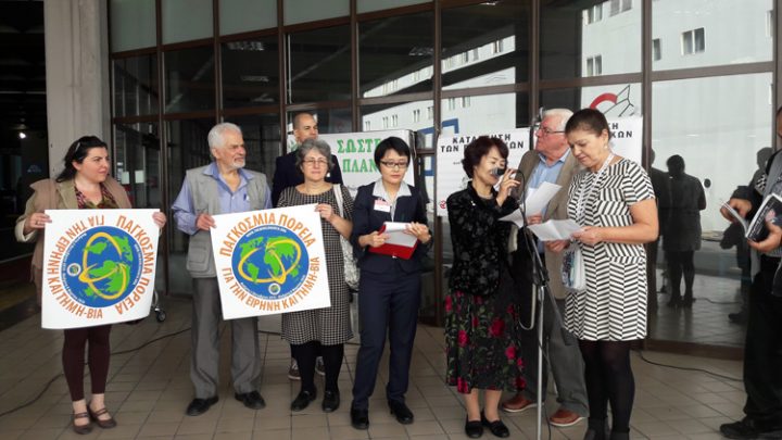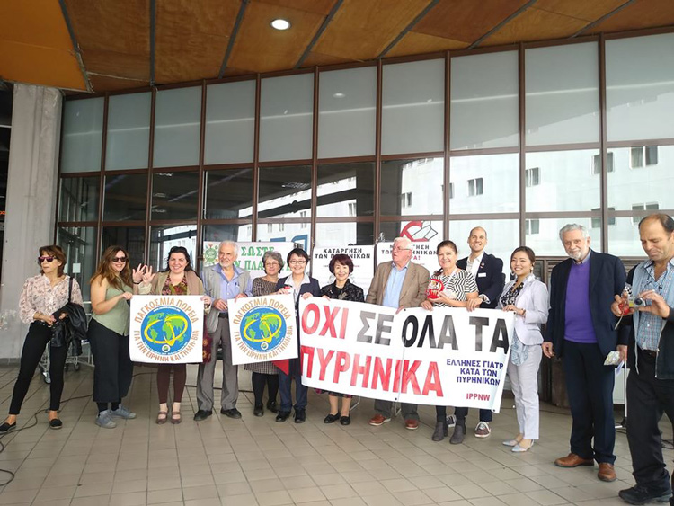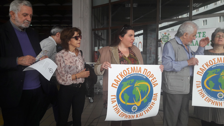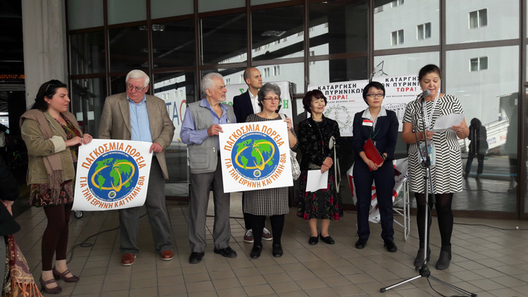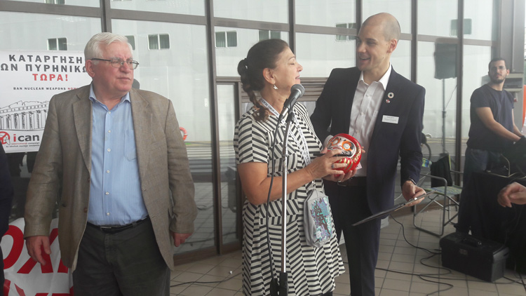 Στην τελετή υποδοχής παρευρέθηκαν εκπρόσωποι από τον ελληνικό κλάδο της Διεθνούς Ένωσης Γιατρών για την Πρόληψη του Πυρηνικού Πολέμου, το Παρατηρητήριο Διεθνών Οργανισμών και Παγκοσμιοποίησης (ΠΑΔΟΠ) και της 2ης Παγκόσμιας Πορείας για την Ειρήνη και τη Μη-βία. Παρόντες επίσης ήταν ο Πάνος Τριγάζης, πρόεδρος της ΠΑΔΟΠ και ο Θοδωρής Δρίτσας, βουλευτής του ΣΥΡΙΖΑ.