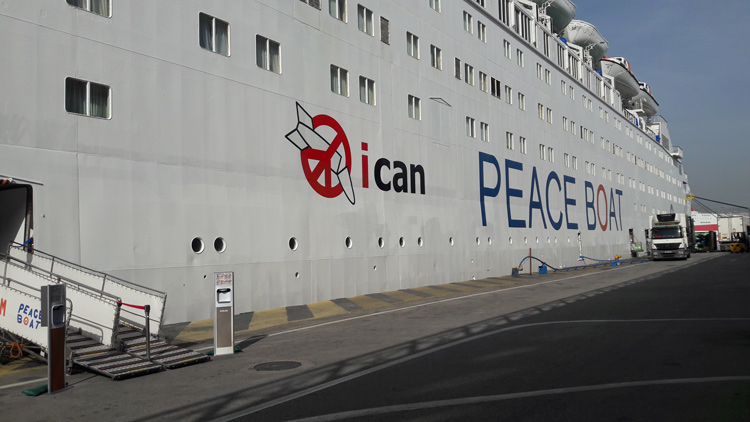 Σήμερα το πρωί έφτασε στο λιμάνι του Πειραιά το Peace Boat, το Πλοίο της Ειρήνης. Με μια τελετή υποδοχής η Μαρία Σωτηροπούλου, πρόεδρος του ελληνικού κλάδου της Διεθνούς Ένωσης Γιατρών για την Πρόληψη του Πυρηνικού Πολέμου καλωσόρισε το πλοίο σε μια ακόμη επίσκεψή του στην Ελλάδα και το 102ο παγκόσμιο ταξίδι του. Ο Trevor Cambell, εκπροσωπώντας το Peace Boat ευχαρίστησε για την υποδοχή καθώς από το λιμάνι του Πειραιά ξεκίνησε το πρώτο του ταξίδι το πλοίο το 1990. Μαζί τους σε αυτό το ταξίδι βρίσκεται και η Sakashita San, επιζήσασα από την ατομική βόμβα της Χιροσίμα της Ιαπωνίας, που όπως είπε και η ίδια: «Σκοπός μου είναι να δημιουργηθεί ένας κόσμος χωρίς πυρηνικά όπλα, διότι τα πυρηνικά όπλα καταστρέφουν την ομορφιά του κόσμου».