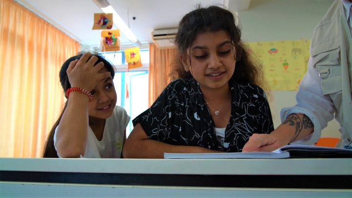 Για τη Χούμα είναι η πρώτη φορά στη ζωή της που κάθεται σε θρανίο και έχει δικά της βιβλία και τετράδια.