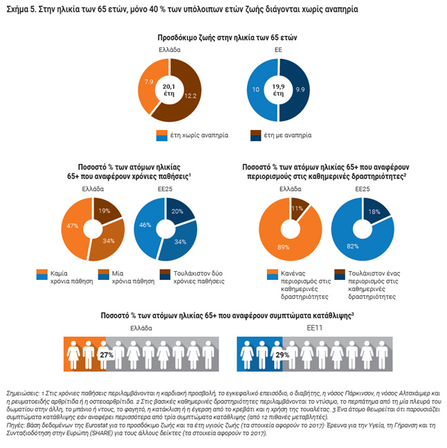 Πολλά έτη ζωής μετά την ηλικία των 65 ετών διάγονται με χρόνιες παθήσεις και αναπηρίες