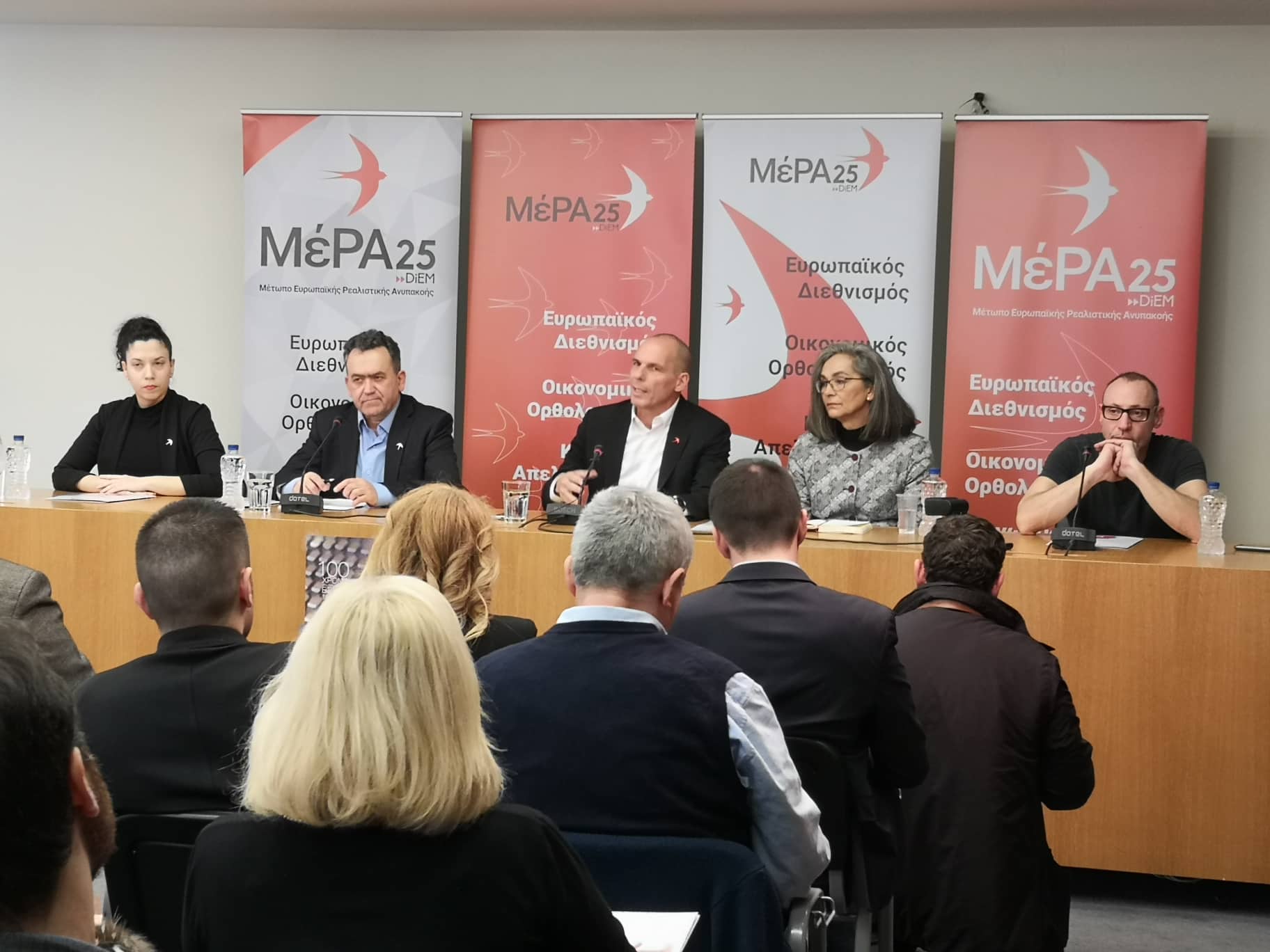 Από τη συνέντευξη τύπου που έδωσε την περασμένη εβδομάδα το ΜέΡΑ25, φωτογραφία Ρένα Ξηροφώτου.