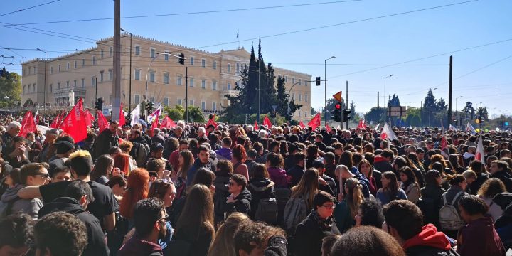 Πολυπληθής η πορεία σήμερα στην Αθήνα ενάντια στο Σχέδιο Νόμου που κατέθεσε χτες η κυβέρνηση για το ασφαλιστικό. Νέες και νέοι, φοιτήτριες και φοιτητές, γονείς με παιδιά, μπαλόνια, συνθήματα αλλά και τα κλασσικά μπλόκα, δήλωσαν παρόν στη διαμαρτυρία για την κοινωνική ασφάλιση που πλήττεται. Ευφάνταστο το πανό με σύνθημα ΠΩΛΕΙΤΙΣΜΟΣ. Ακολουθεί φωτορεπορτάζ από τη Ρένα Ξηροφώτου και το Γιάννο Ηλιάδη.